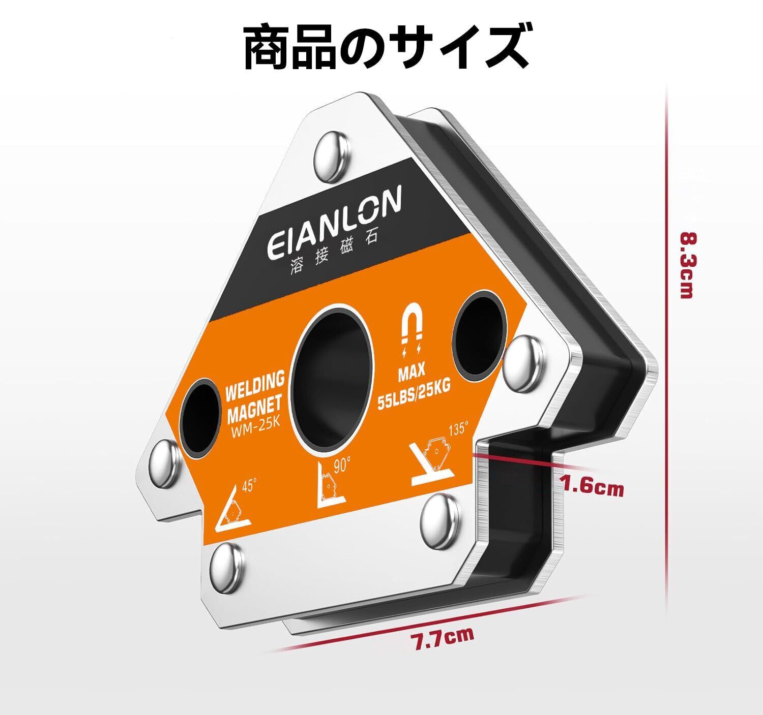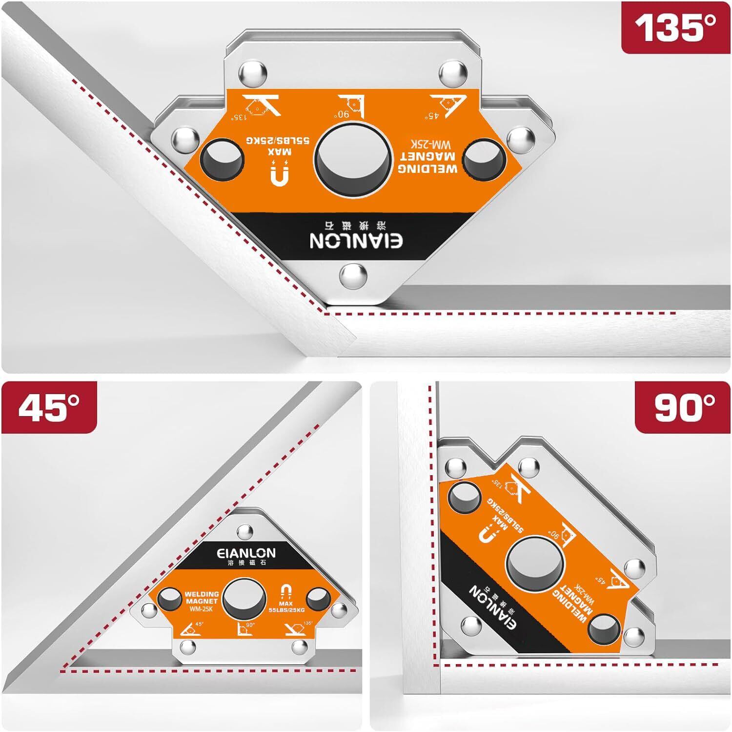 【マルチアングル溶接マグネット】45°、90°、135°の3つの角度の矢印デザインにより、一般的な溶接作業を迅速かつ安全にセットアップできます。磁石は必要な角度に回転し、溶接作業中に 2 つまたは 3 つのワークピースをサポートします。