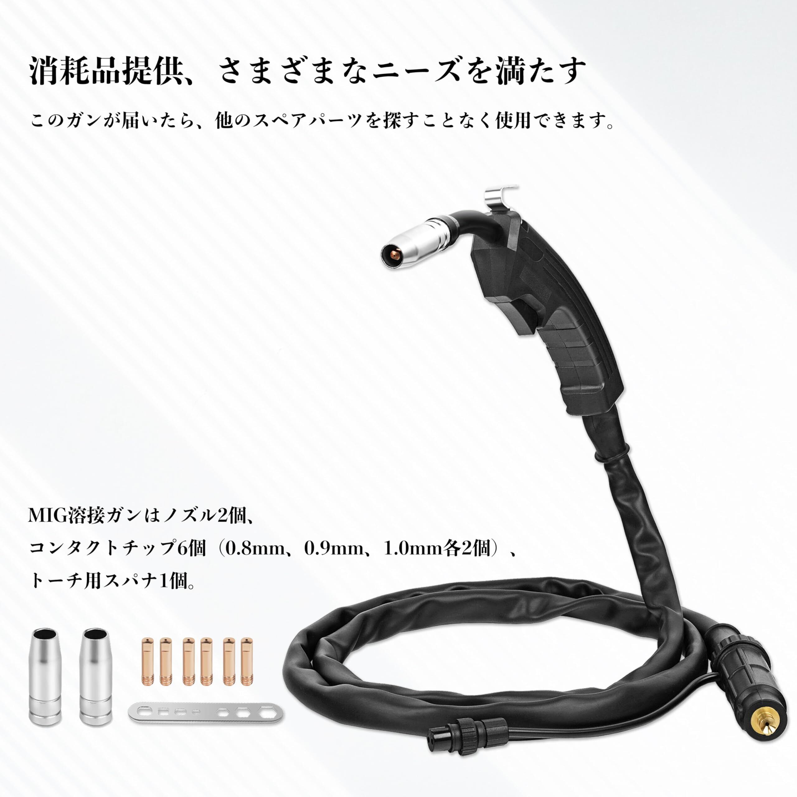 【消耗品提供、さまざまなニーズを満たす】 このMIG溶接ガンはノズル2個、コンタクトチップ6個(0.8mm、0.9mm、1.0mm各2個)が付属しています。 このガンが届いたら、他のスペアパーツを探すことなく使用できます。