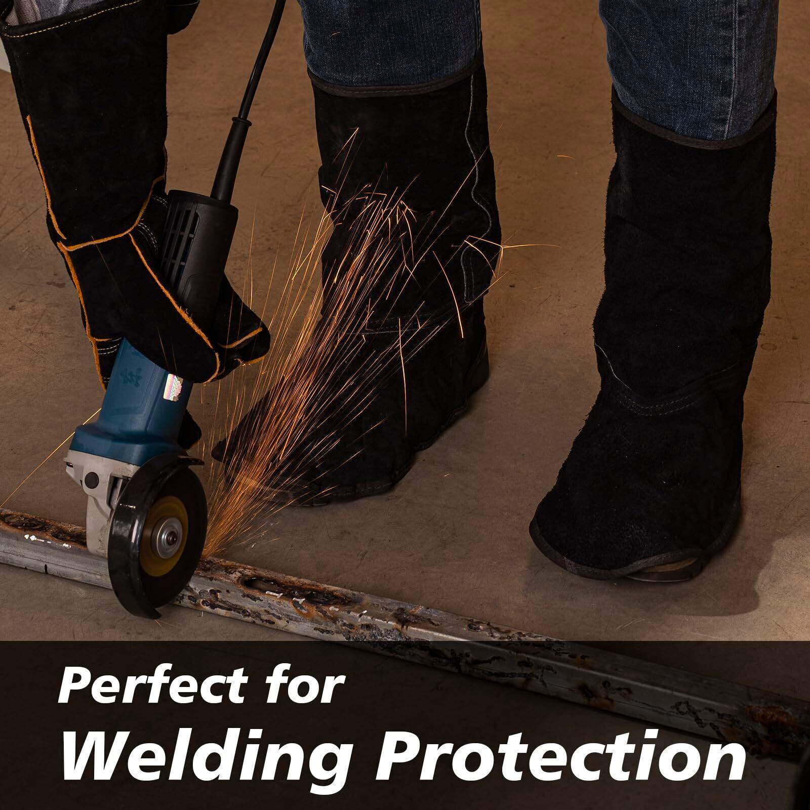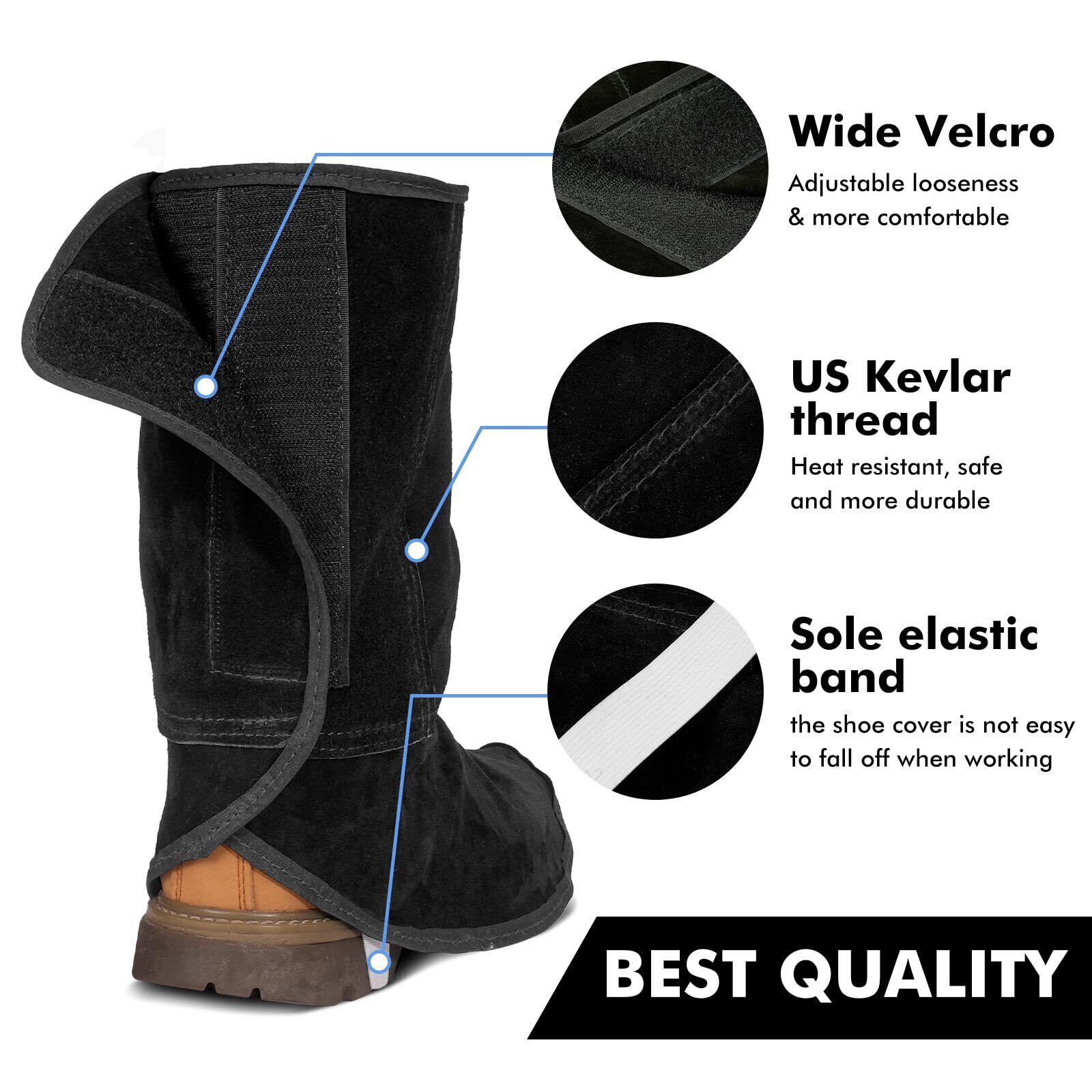 LeaSeek レザー溶接スパッツ 耐熱防炎 耐摩耗 溶接ブーツカバー 全面防護シューズプロテクター 調整可能ゲートル アーク溶接・鍛造用 男女兼用