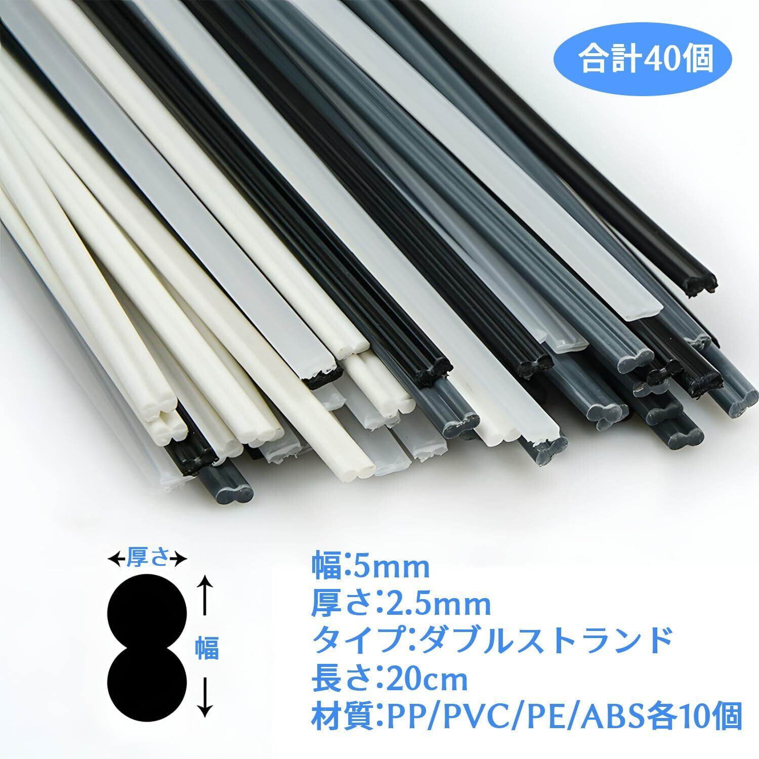プラスチック溶接棒 40本セット PP/PE/PVC/ABS 各10本入り 高強度 耐熱 プロ仕様 車両 家電 水道 DIY 溶接 修理に最適