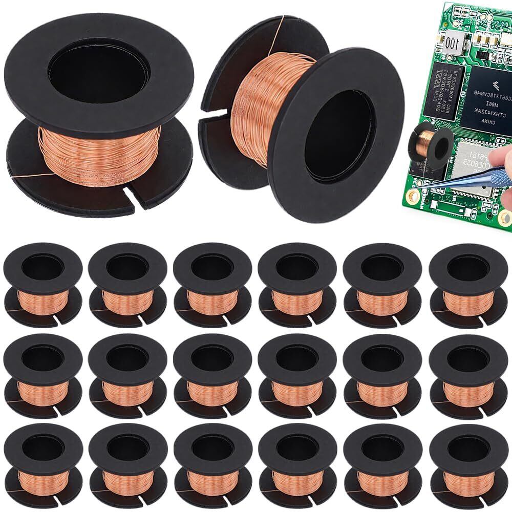 【2025最新】エナメル線 銅線 20巻セット 0.1mm直径 巻き線 モータ 長さ約10m 修理用 交換用 電子部品/スマートフォン修理/PCマザーボード ポリウレタン銅線 高温抵抗 良好な断熱性能 DIY作業工具 溶接用品