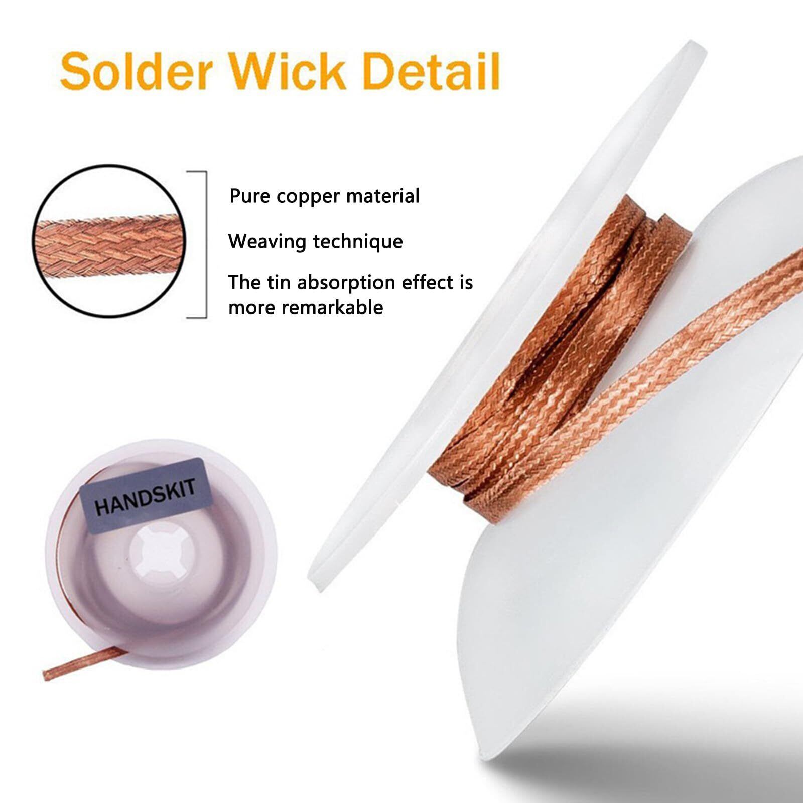 ハンダ吸い取り線 材質:編組はんだ吸取芯は100%銅線で作られ、細い編組のデザインです