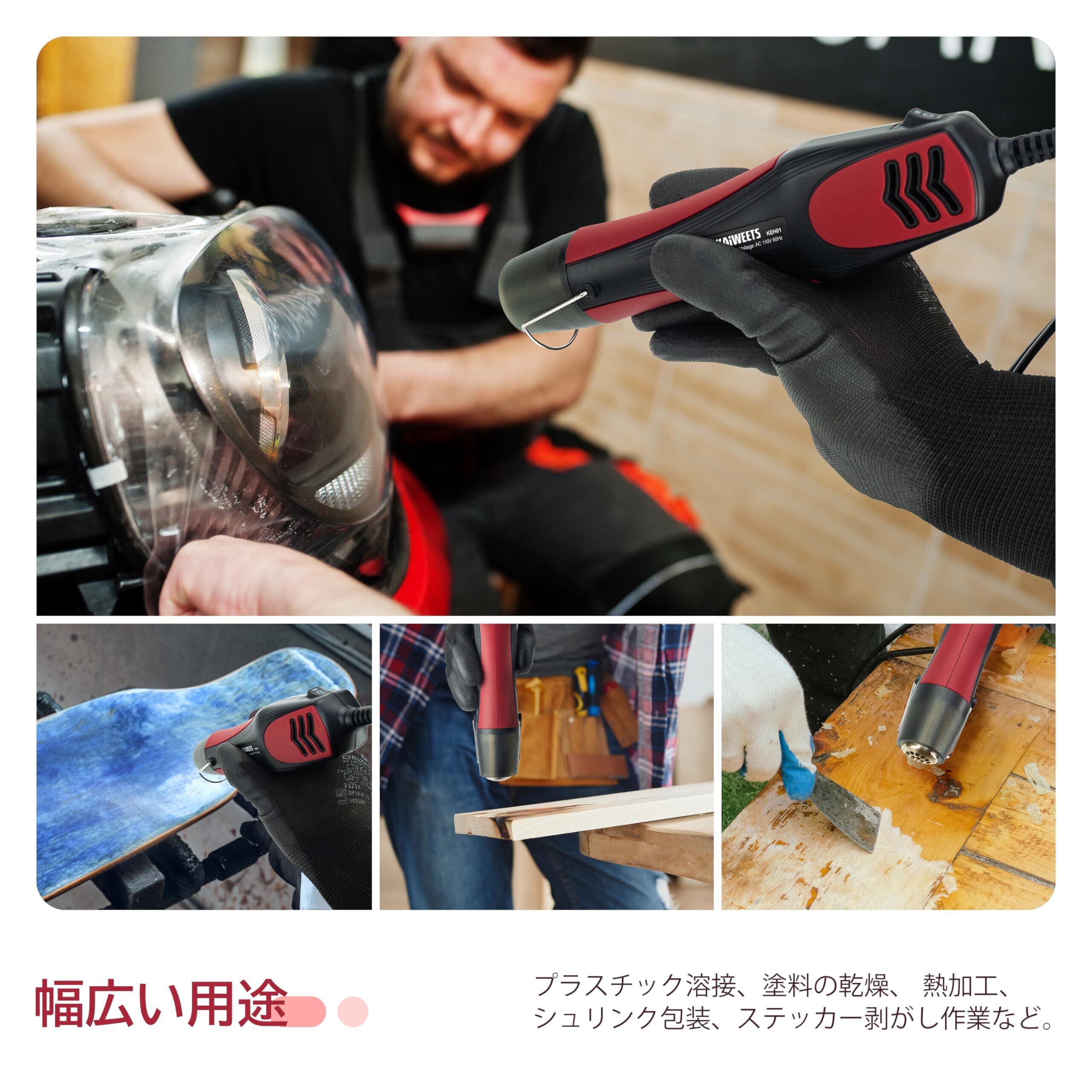 KAIWEETS 450W エンボスヒーター 小型ヒートガン 250℃-450℃ 2段階調温可能 急速加温 フェンダー曲げ 収縮チューブ シュリンク包装 塗装の乾燥 塩ビの溶接 補修 熱処理用ハンディ熱風機 ノズル付属