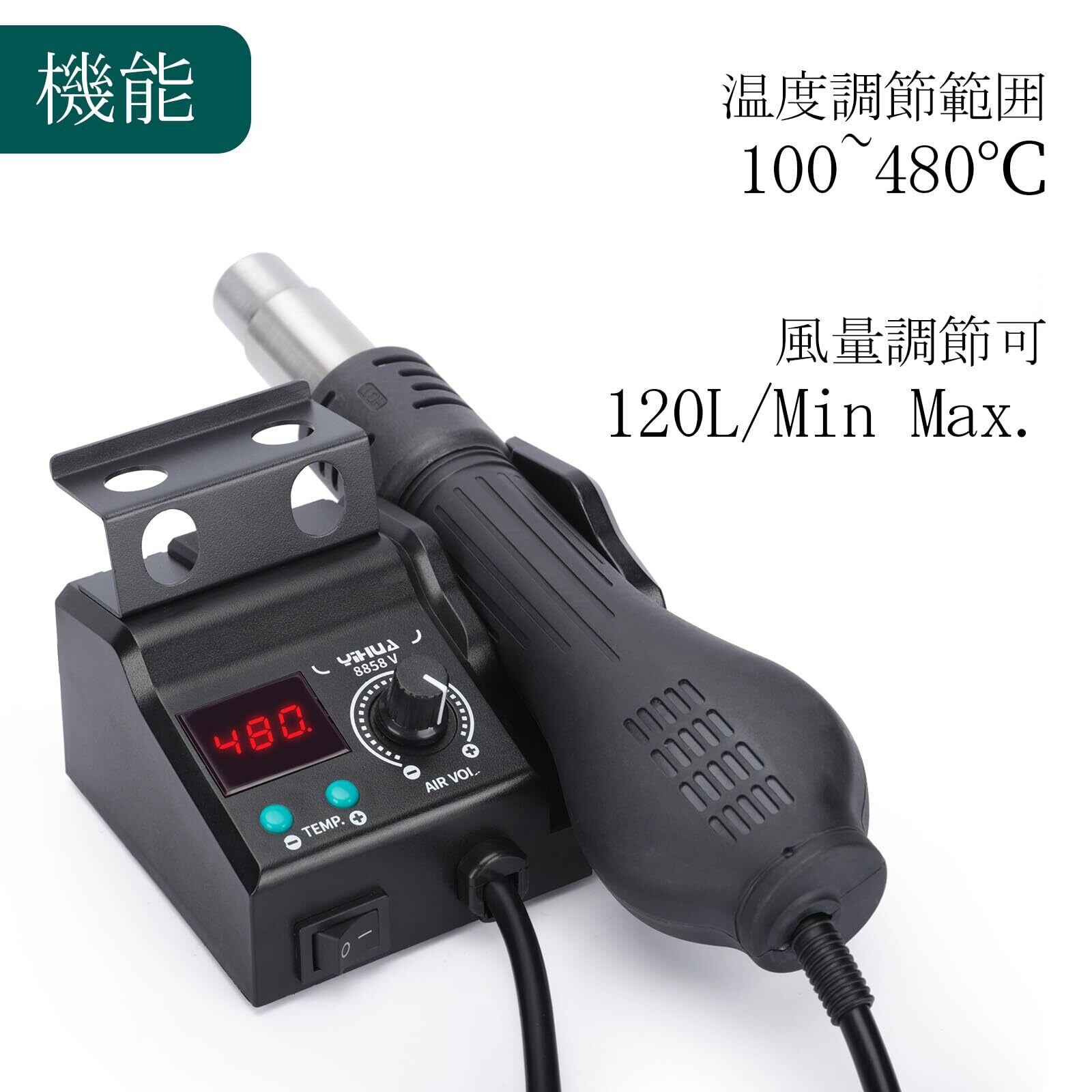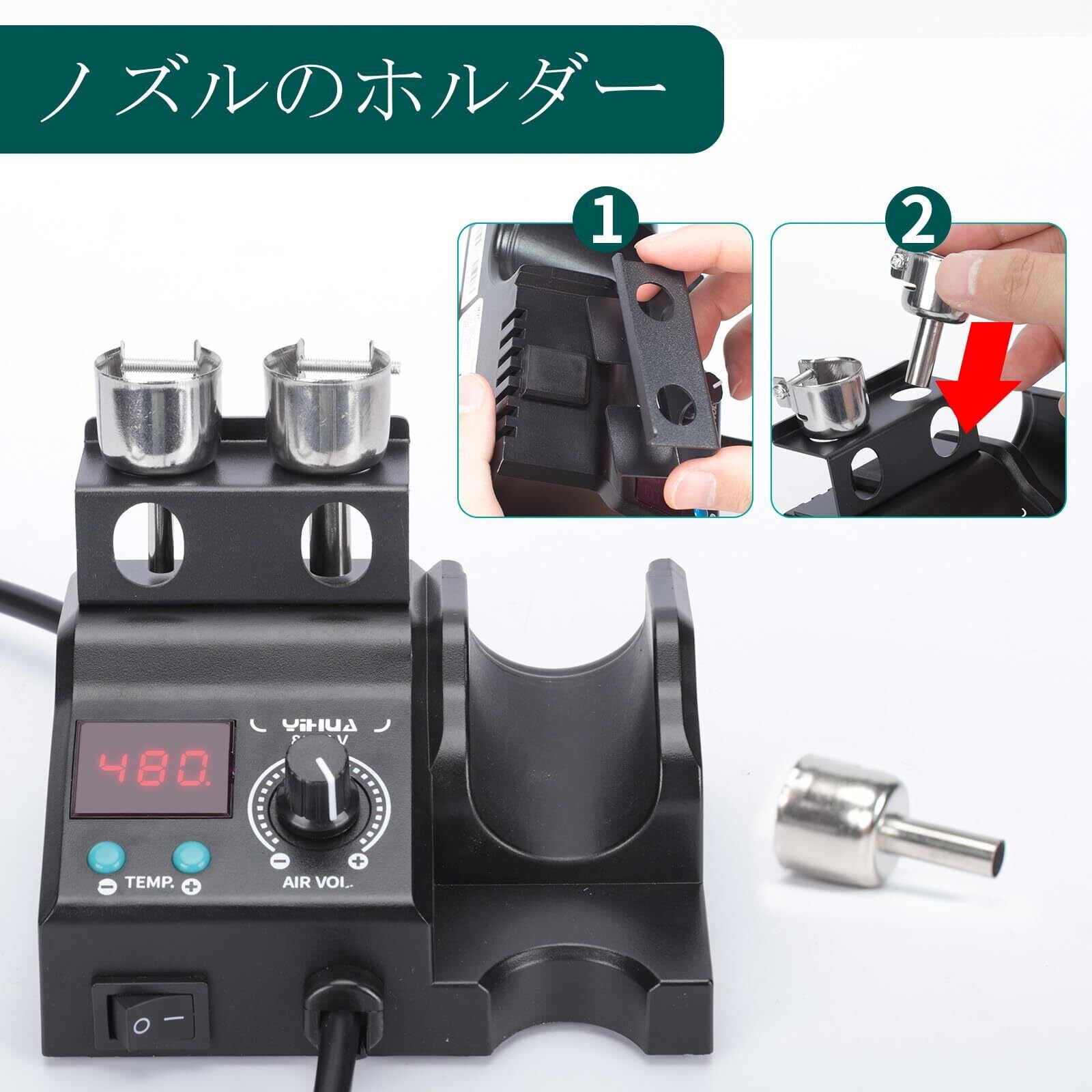 【2025最新】YIHUA 8858-V 熱風リワークステーションホットエア コンパクトなデザイン ノズルホルダーを一体型 ノズル3本 ピンセット2本 温度・風量調節可能 °C/°F変換など