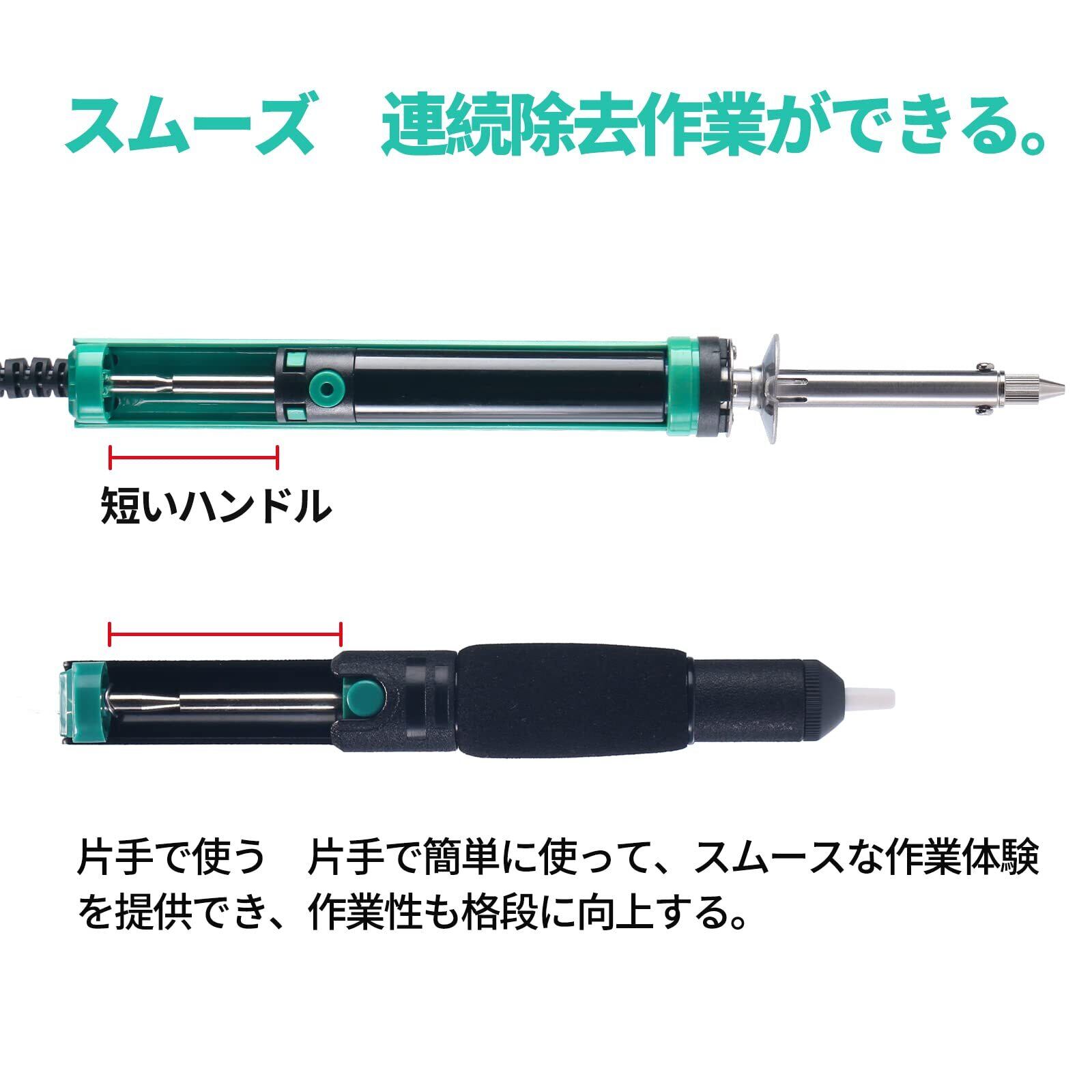 「快適な連続作業」吸取具のヒーターの端に偏向器が付いており、作業中余分な熱が手に伝わるのを防ぎま す。連続作業でもはんだは目詰まりしなく、手も熱くならないです。