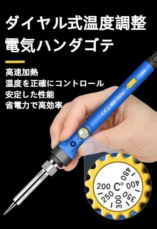 強力100W ード式半田ごて 半田ごて 温度調節可(200℃-480℃) 予備コテ先5種類付属 指示ランプ付き 電源スイッチ付き ハンダゴテ はんだ ごて 充 (100W簡易セット)