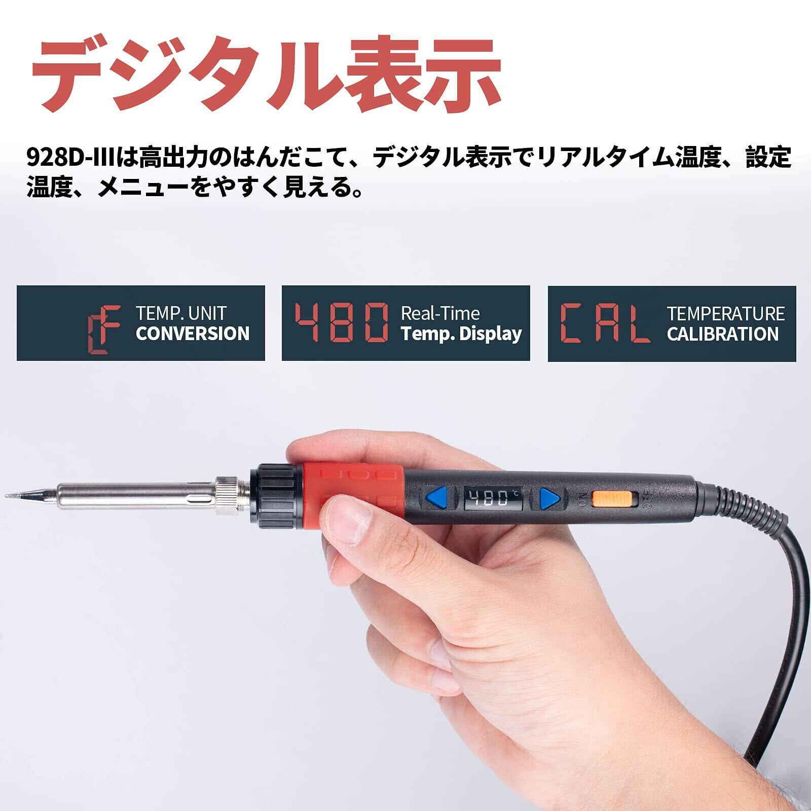 YIHUA 928D-III はんだこて 110Wハイパワー デジタル表示 温度制御型(90°C ~ 480°C) スイッチ付き スリープモード 丈夫で防熱のホルダー クリーニングワイヤー 3つのこて先追加 PSE認証 日本語取扱説明書付き 温度安定のはんだこて 持ち運びやすい