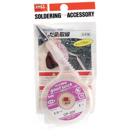 【数量限定】太洋電機産業(goot) はんだ吸取線 2.0㎜幅 ステンレス口金付き ディスペンスケース入り 2m巻き CP-20Y 日本製