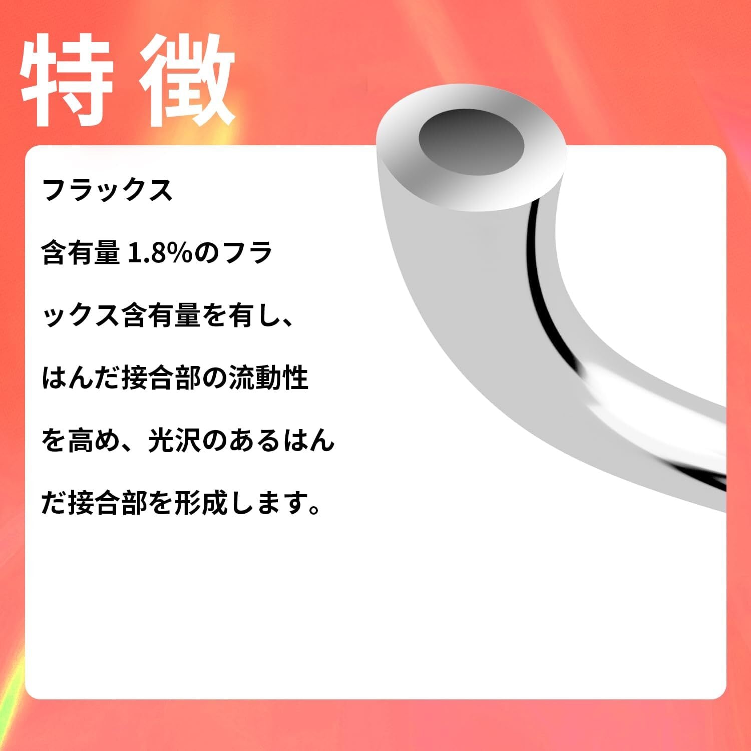 【低融点ヤニコア】: 183°C低融点で熱ダメージを低減(ロジン1.8 %含有により酸化防止+濡れ性向上)
