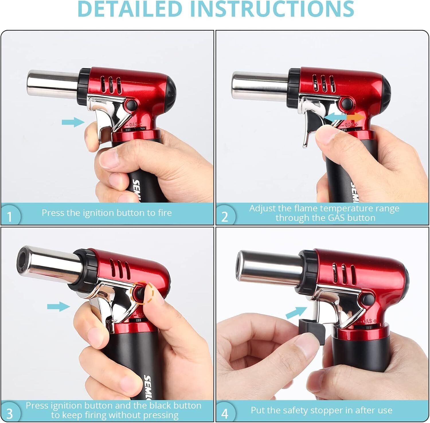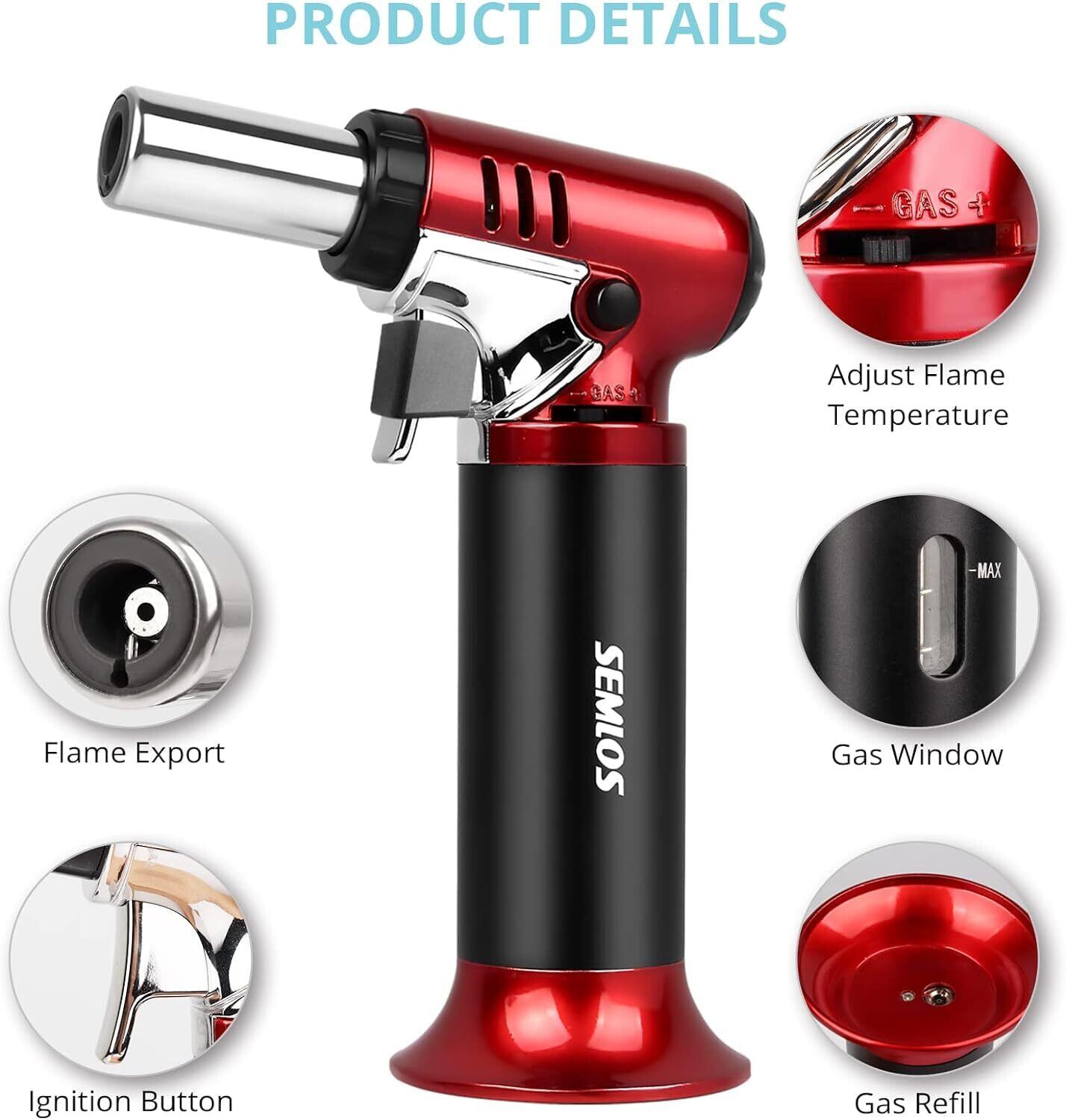 Semlos トーチバーナー 料理用 ガスバーナー 可視式のガスタンク 1300℃/2500°Fパワートーチ 家庭用 調整可能 安全ロック 充填式 防風 ワンタッチ着火 BBQ/アウトドア/料理/DIY/キャンプ/溶接などに対応(ガスない)