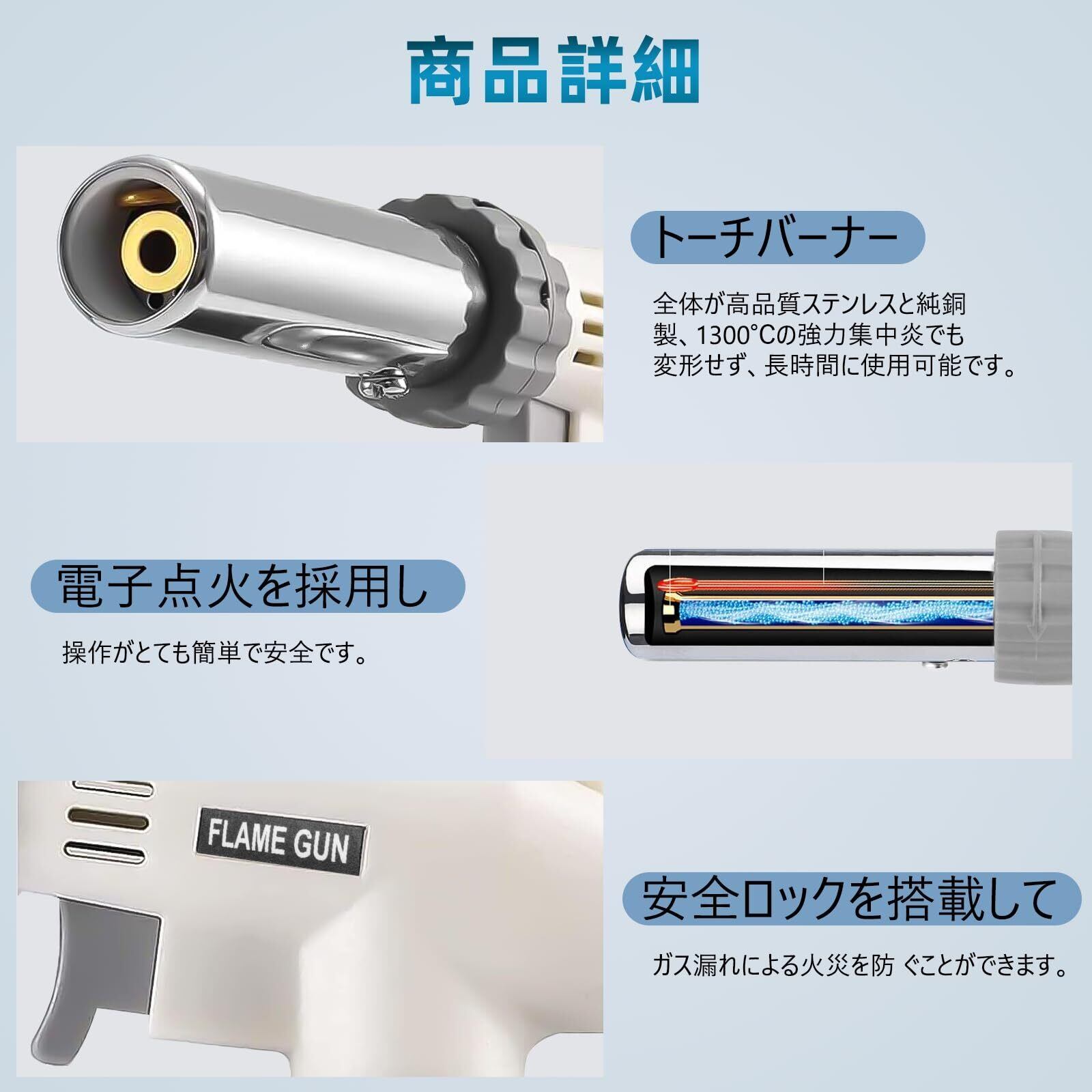 【耐久性が抜群】トーチバーナーは、高品質の亜鉛合金とステンレス鋼を採用して、耐久性が抜群で、長期間使用できます。(ご注意:お子様の手の届かないところに保管してください。)弊店の商品は1個ずつ丁寧に検品を行っておりますが、万が一不具合、初期不良等がございましたら、「注文履歴」→「出品者に連絡」から弊店までにご連絡ください(商品の交換など対応できます)