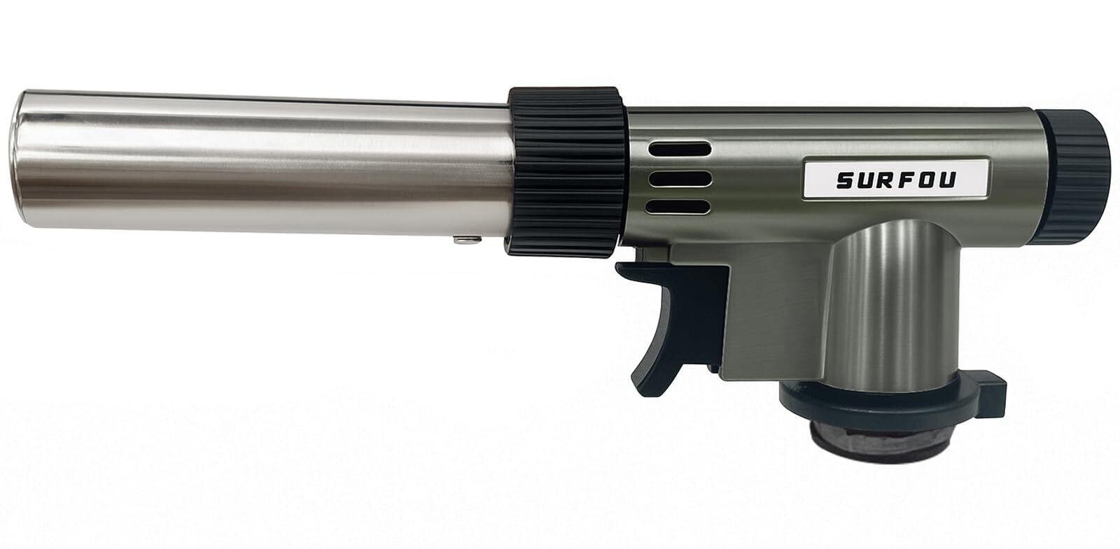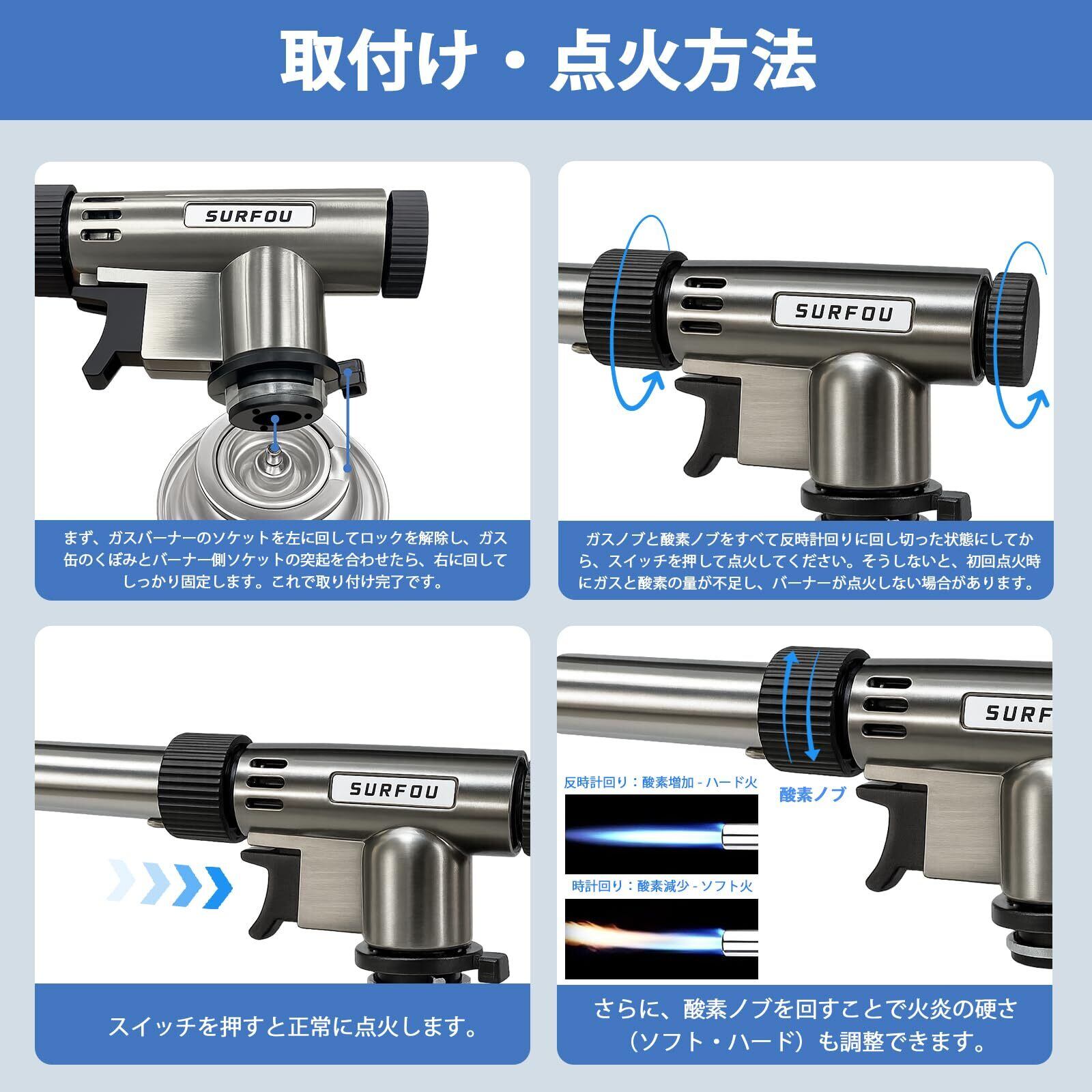 【数量限定】SURFOU 【最新強化版】ガスバーナー 金属製 ガストーチ キャンプ用品 バーベキュー用 トーチバーナー 逆さ使用可能 料理用 900℃~1300℃ 火力調節 電子点火 お菓子作り 炭火起こし 溶接 アウトドア用 火炎放射器