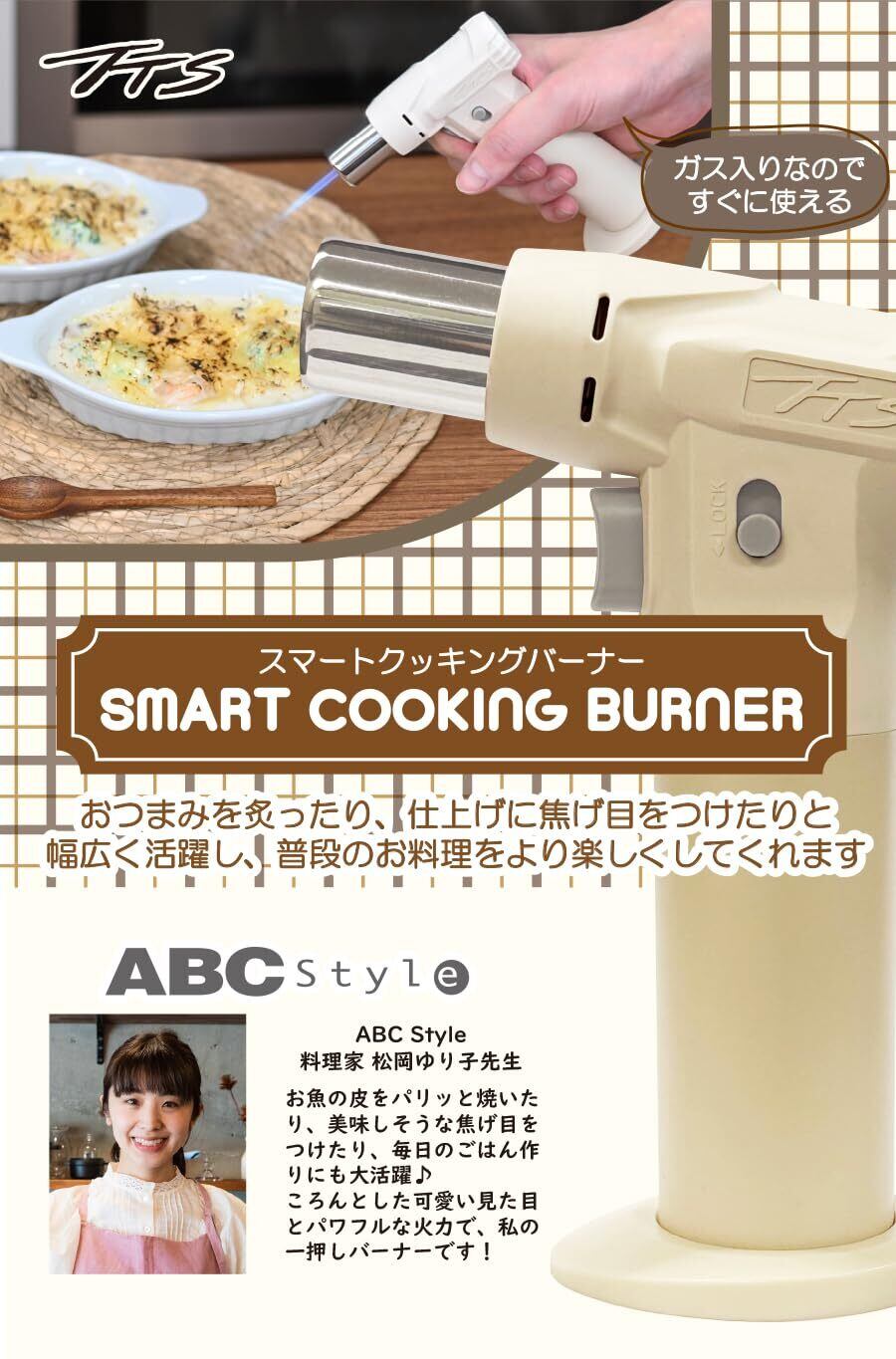 TTS SMART COOKING BURNER スマートクッキングバーナー 料理家推奨 ガスバーナー バーナー ガス注入式 キャンプ 料理 DIY 火力調整可能 最大1300℃ ベージュ