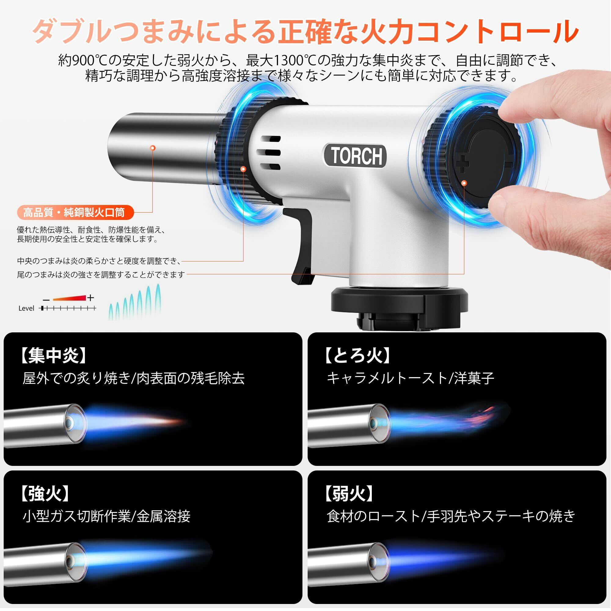 【幅広いシーンに対応】 このガスバーナーは家庭のキッチンやアウトドアでのバーベキュー、キャンプなどに最適です。炭の着火や軽作業(溶接など)にも利用可能です。多機能設計により日常のさまざまなニーズに応え、使用効率を向上させます。