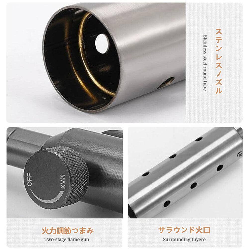 「製品仕様」:火炎放射器は高品質なステンレス鋼と純銅で作られています、耐熱性抜群、頑丈で長くご利用いただけます。ハンドル部分は天然木を採用したおり、表面の木目は摩擦を増加し、滑り止めを向上させることができます。手触りが非常に心地よい。