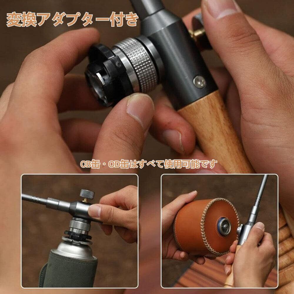 草焼きバーナー 火炎放射器 雑草 バーナー カセットボンベ式 ガスバーナー 取り外し可能 雑草焼き 炭起こし 火力調節 変換アダプター付き CB缶・OD缶兼用 木製ハンドル 軽量 アウトドア キャンプ 取扱説明書付き