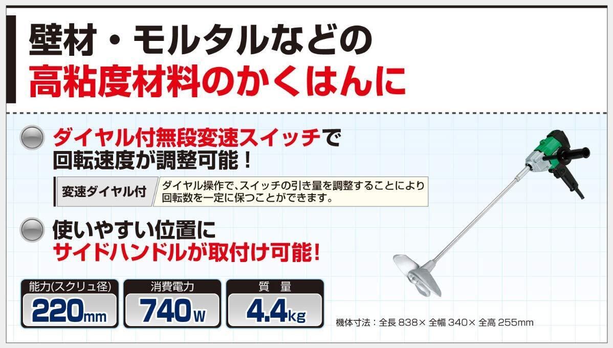 【特価セール】HiKOKI(ハイコーキ) かくはん機 スクリュー径220mm AC100V 高粘度材料用 UM22V
