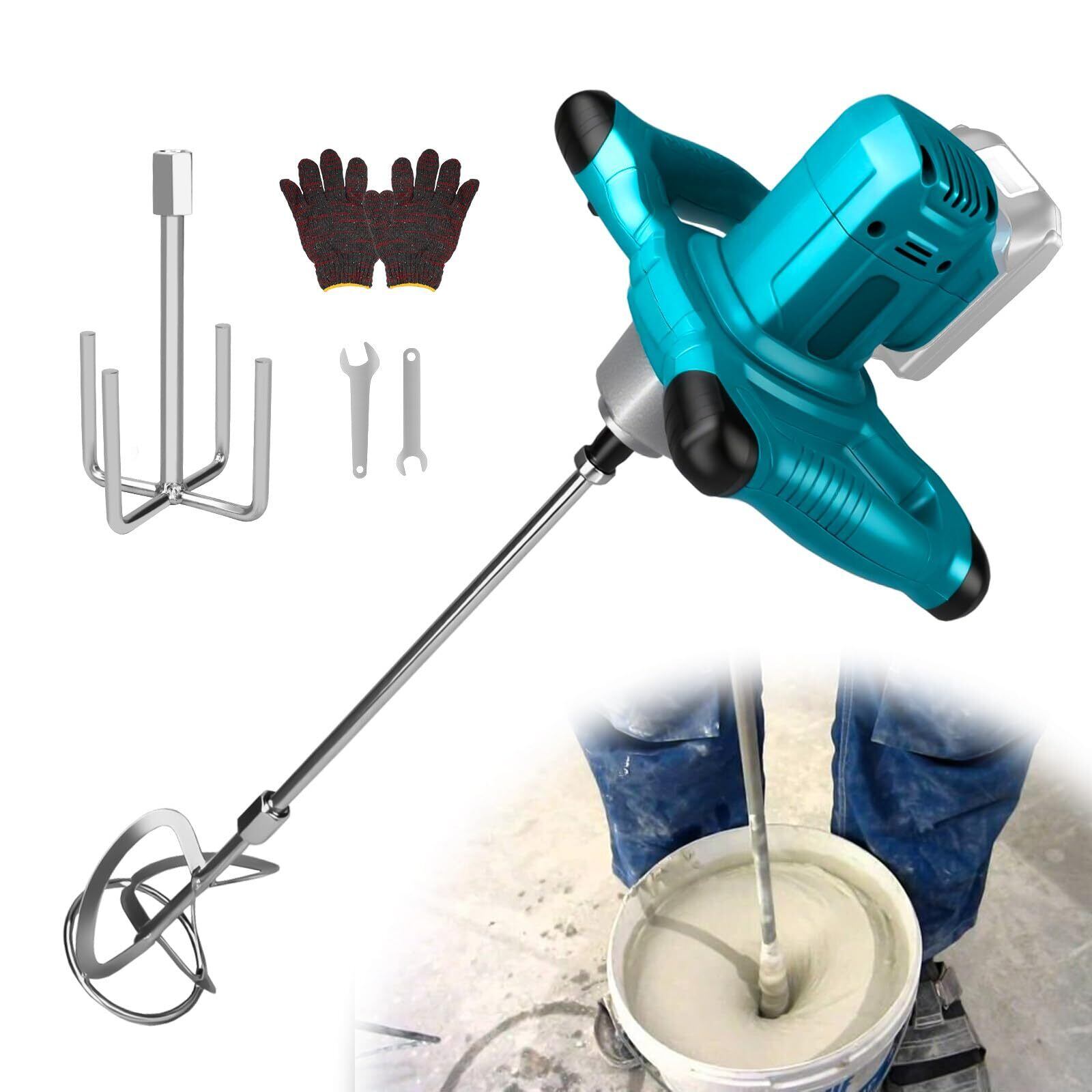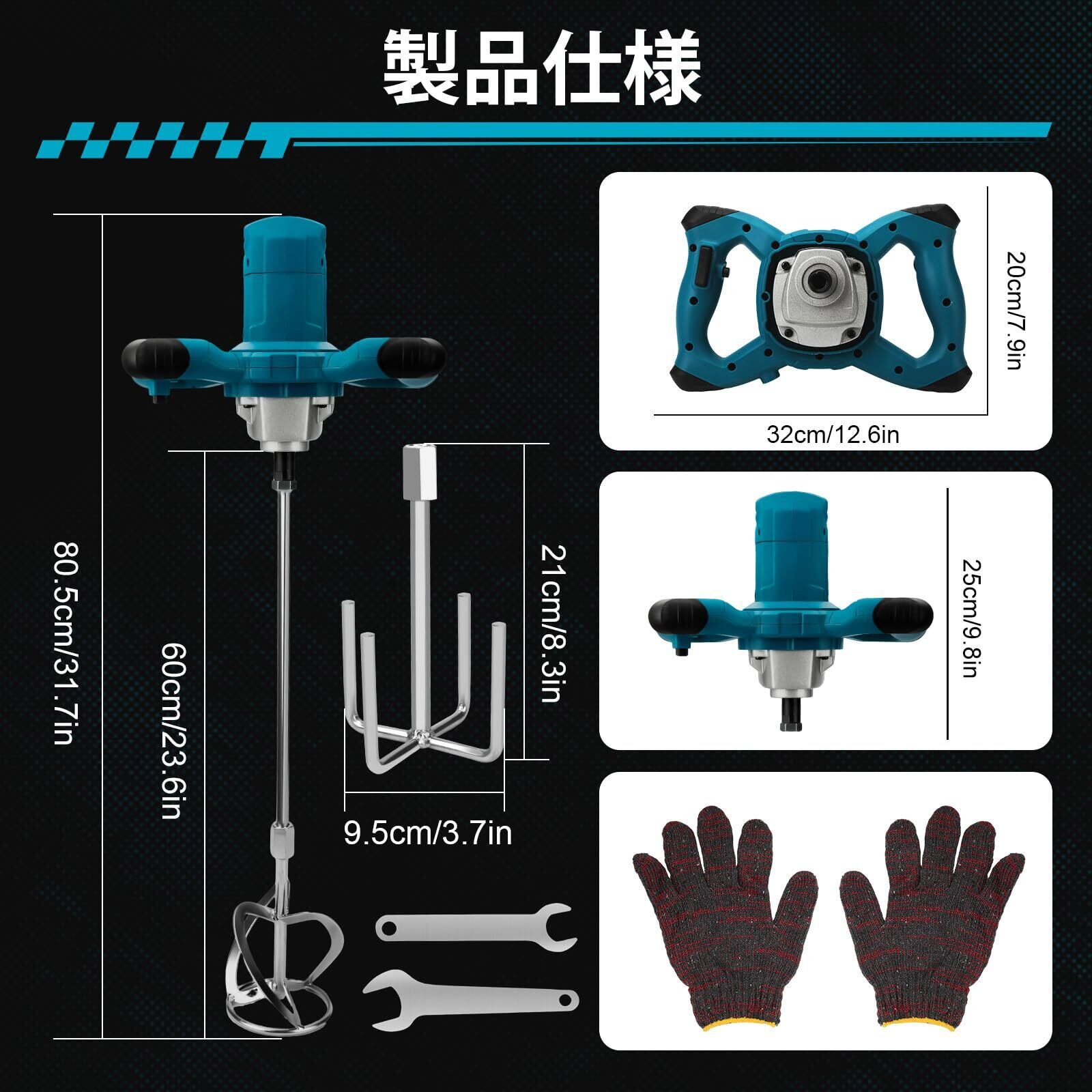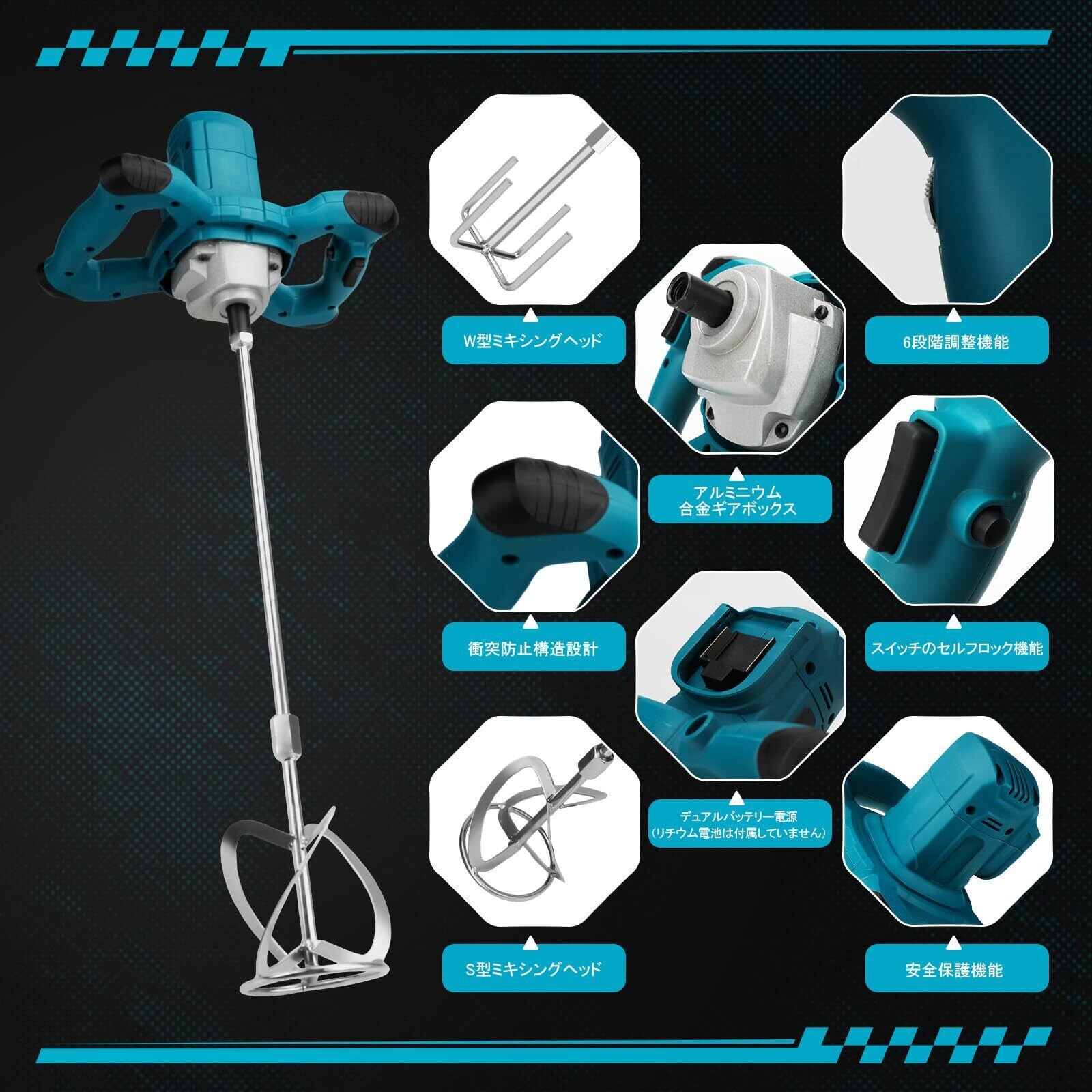 コンクリートミキサー かくはん機 【改良·強力版】 ブラシレスモーター 充電式 攪拌機 【150-1200RPM 6段階速度調節】 3000W マキタ 18Vバッテリー対応 スイッチロック機能 四重安全保護 最大65N.m 強力 低噪音 溶液/塗料/ペンキ/モルタル/セメント 螺旋/十字型アタッチメント付き 日本語取扱説明書【本体のみ バッテリー別売り】
