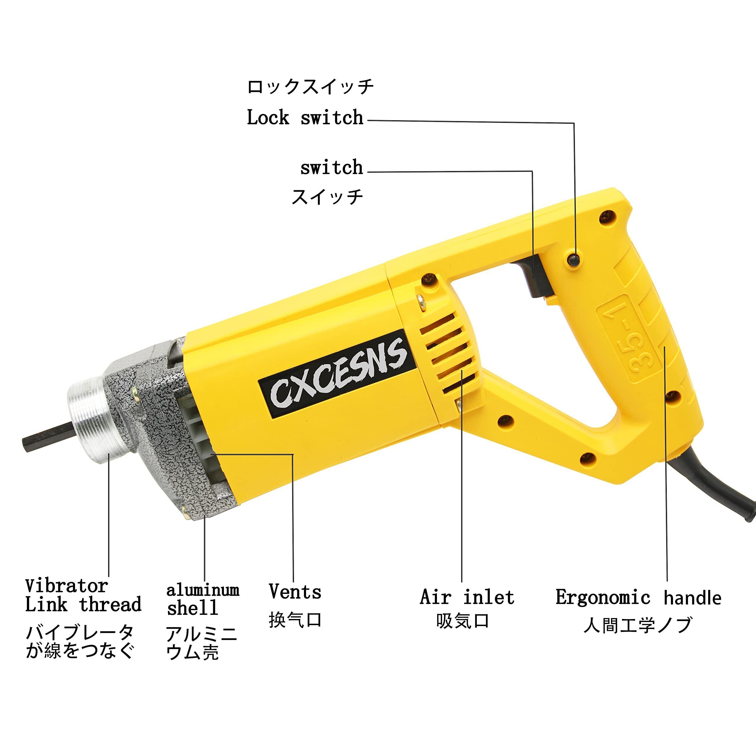 高効率コンクリートバイブレララ :35mm径のバイブレラで、高出力とダブルスイッチロック設計となっており、さまざまな職場に簡単に対応でき、終日の使用に適しており、生産性を向上させます。コンクリートバイブレータは建築、補修、その他のメンテナンス作業に最適です。1分間に13000回以上振動することで気泡を取り除き、コンクリートの処理を早くすることができます。軽量コンパクトなデザインで連続使用に適しています。