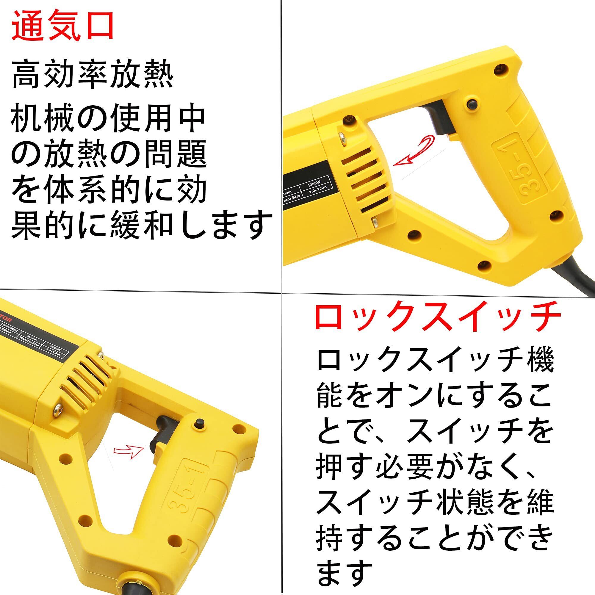 ハンドヘルド式コンクリートバイブレータ 110v 電動コンクリートバイブレータは 毎分13,000回振動します 振動棒Ф35mm ロッド長さ1m コンクリート バイブレータ 生コン 左官 電動工具 打設 建築 DIY