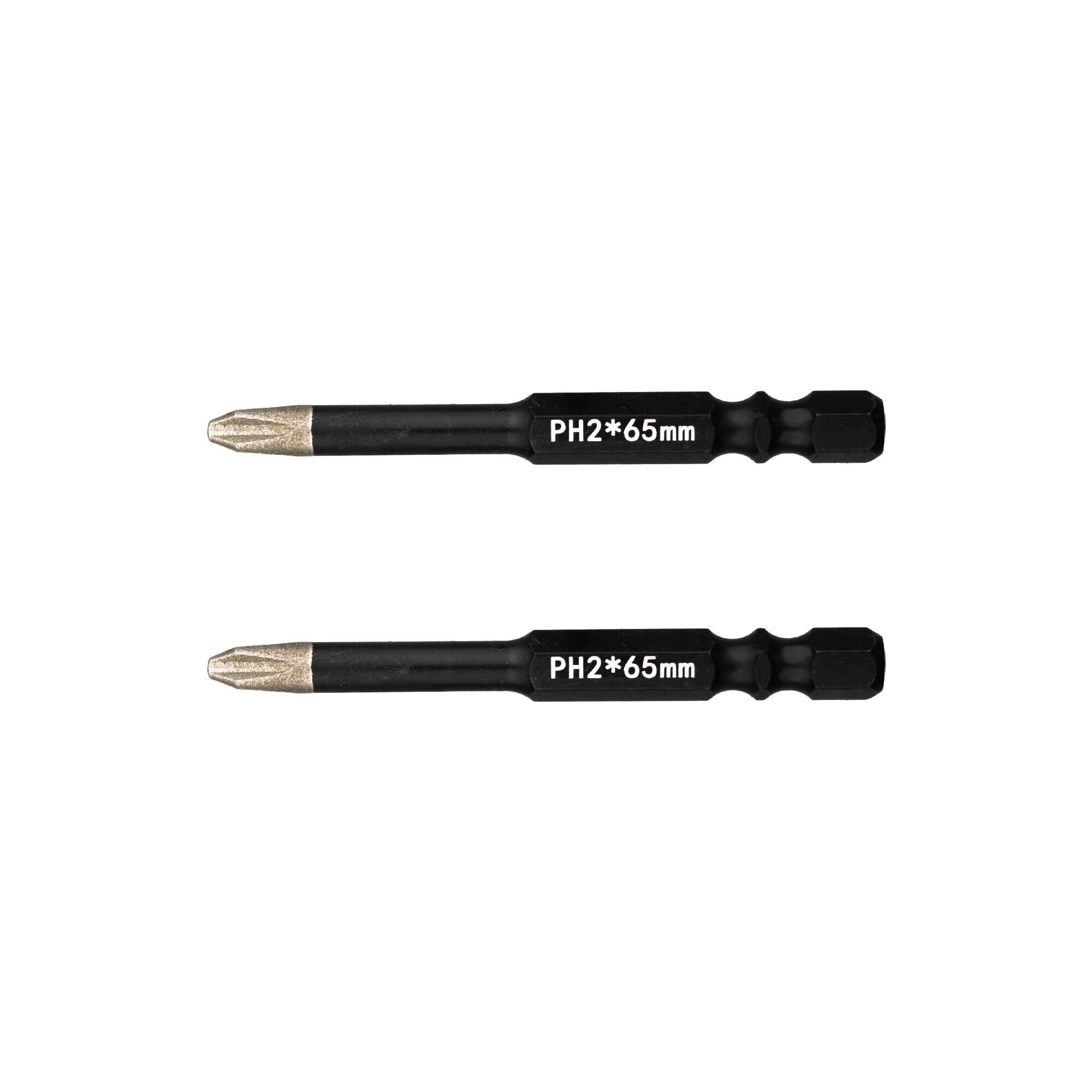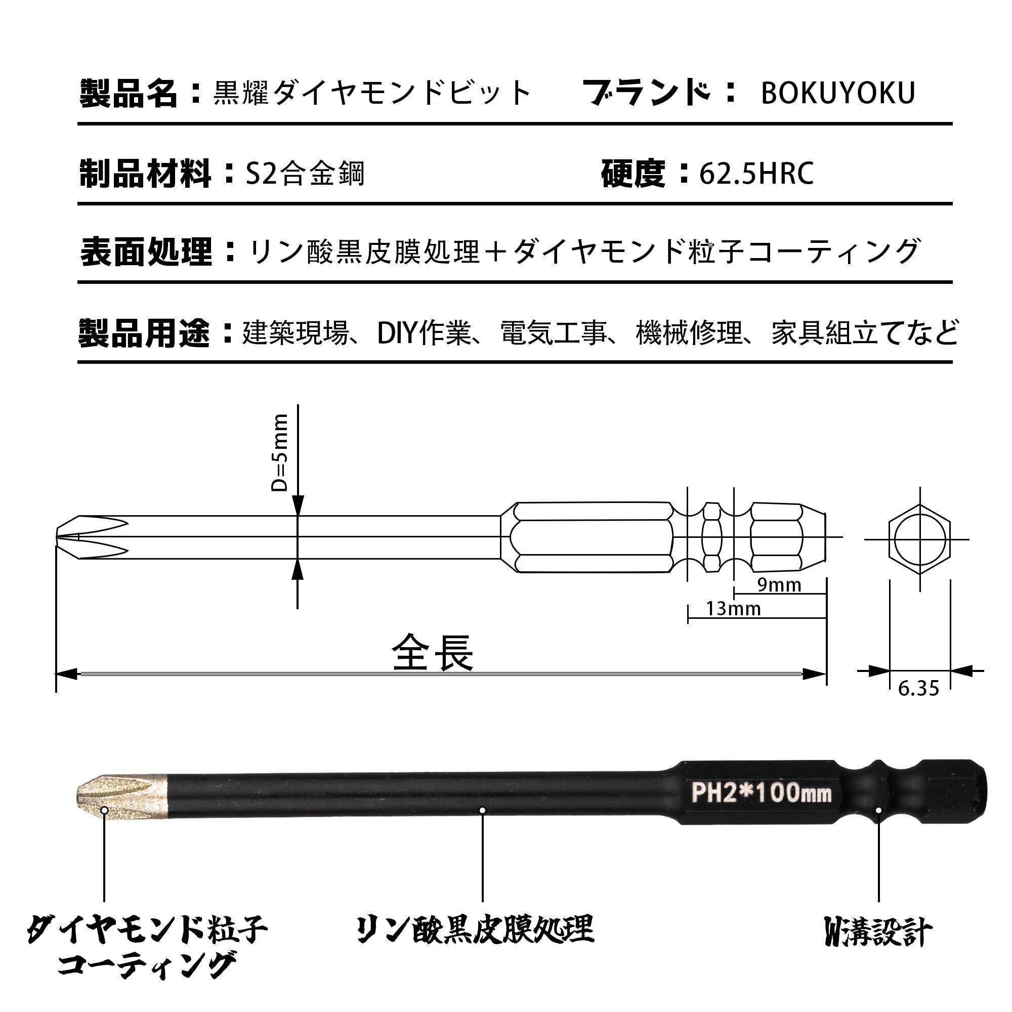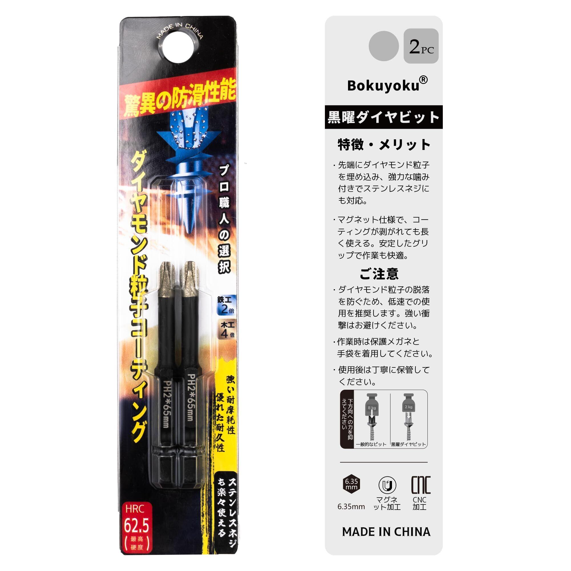 ダイヤモンド黒曜ビット 防滑 強力食いつき W溝タイプ 日米インパクトドライバー対応 マグネット入り 6.35mm六角軸 電動ドライバービット 2本 (+2×65)