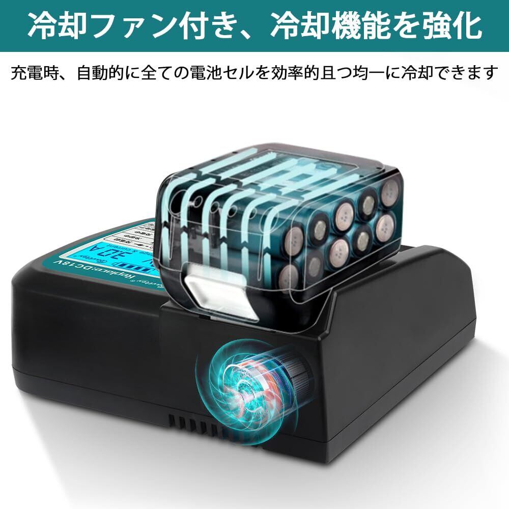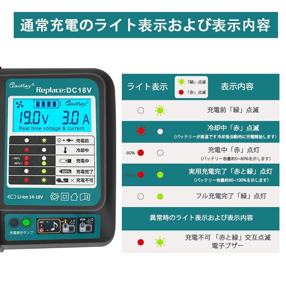 【数量限定】Waitley マキタ充電器 DC18V互換冷却ファン付き ブルーライト液晶パネル付き リアルタイム電流/電圧表示 マキタ14.4V/18V バッテリー用 対応 BL1460 BL1430 BL1860 BL1850充電可能 充電完了メロディ付 【本体のみ】