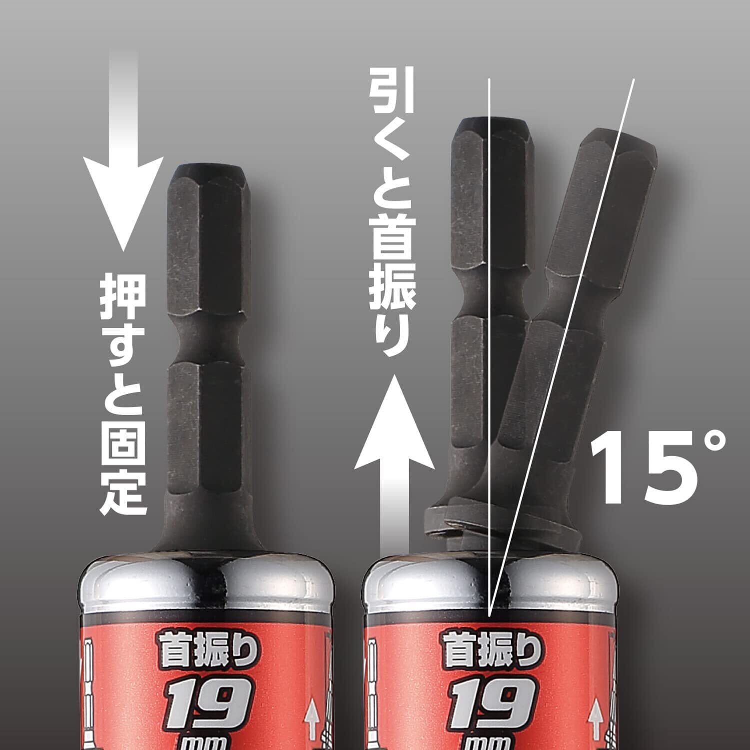 ・ソケット部を押し込むと固定、引き出すと15°の角度で自在に