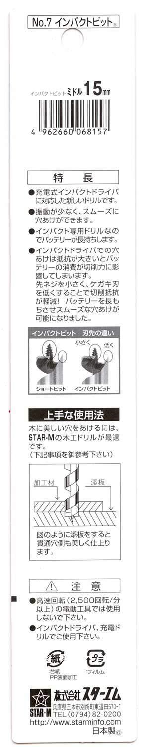 【特価セール】スターエム 7M-150 インパクトビット ミドル 15mm
