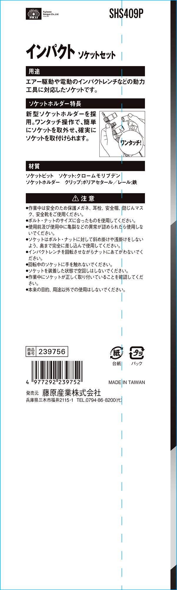 【在庫限り】SK11(エスケー11) インパクトソケットセット SHS409P クリップ色:青 差込角:12.7mm 9点 1セット