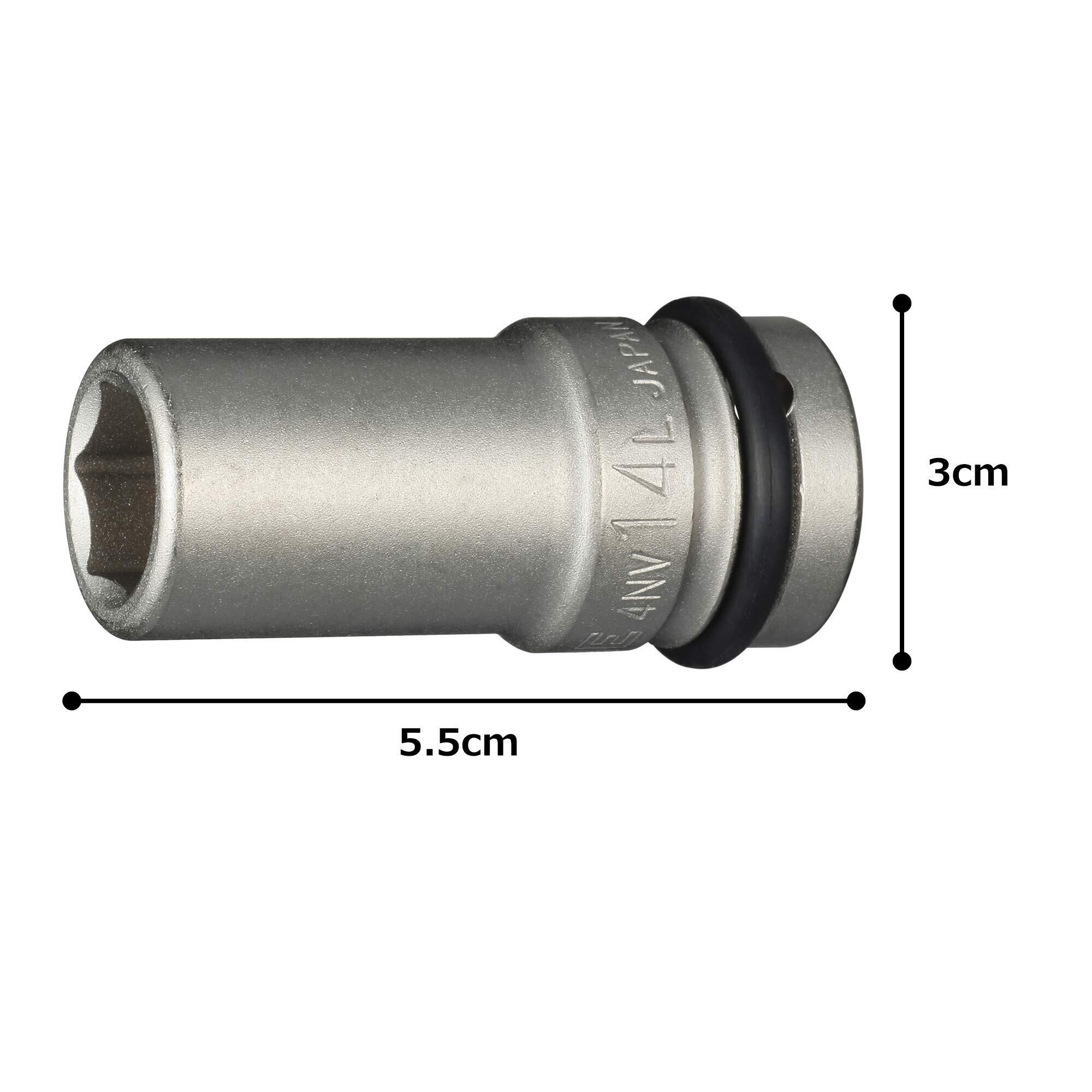 トネ(TONE) インパクト用ロングソケット HP4NV-14L 差込角12.7mm(1/2") 二面幅14mm