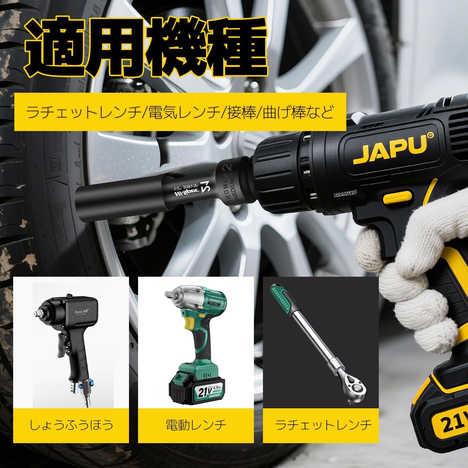 【多様な用途】薄型インパクトソケットはDIY手作り、家庭用メンテナンス、一般修理に広く使用されています。破自動車修理、家具の組み立て、機械の点検や修理などのため一般産業にもよく使用されます。