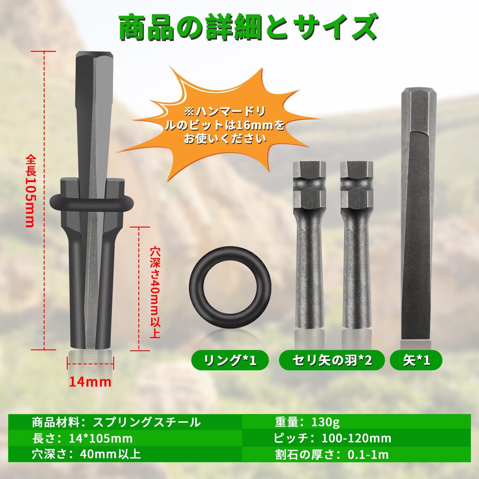 ️【せり矢 14mm セット】セリ矢14mm 4本とコンクリートドリルビット14mm1本のセット。岩割りウェッジは高品質のスプリングスチールと ゴム製シールリング付き、熱処理プロセス、高い硬度、靭性、壊れにくく、長期間使用できます。