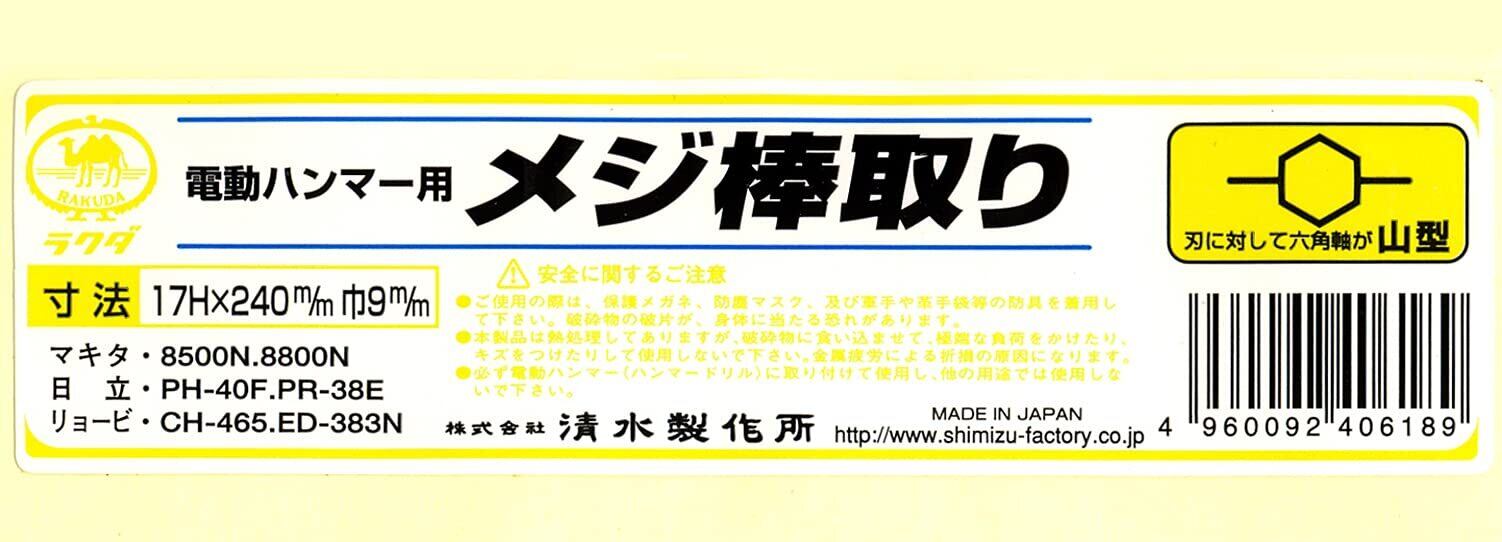 【特別価格】清水製作所 ラクダ 電動ハンマー用メジ棒取り 山型 17H×240×9mm