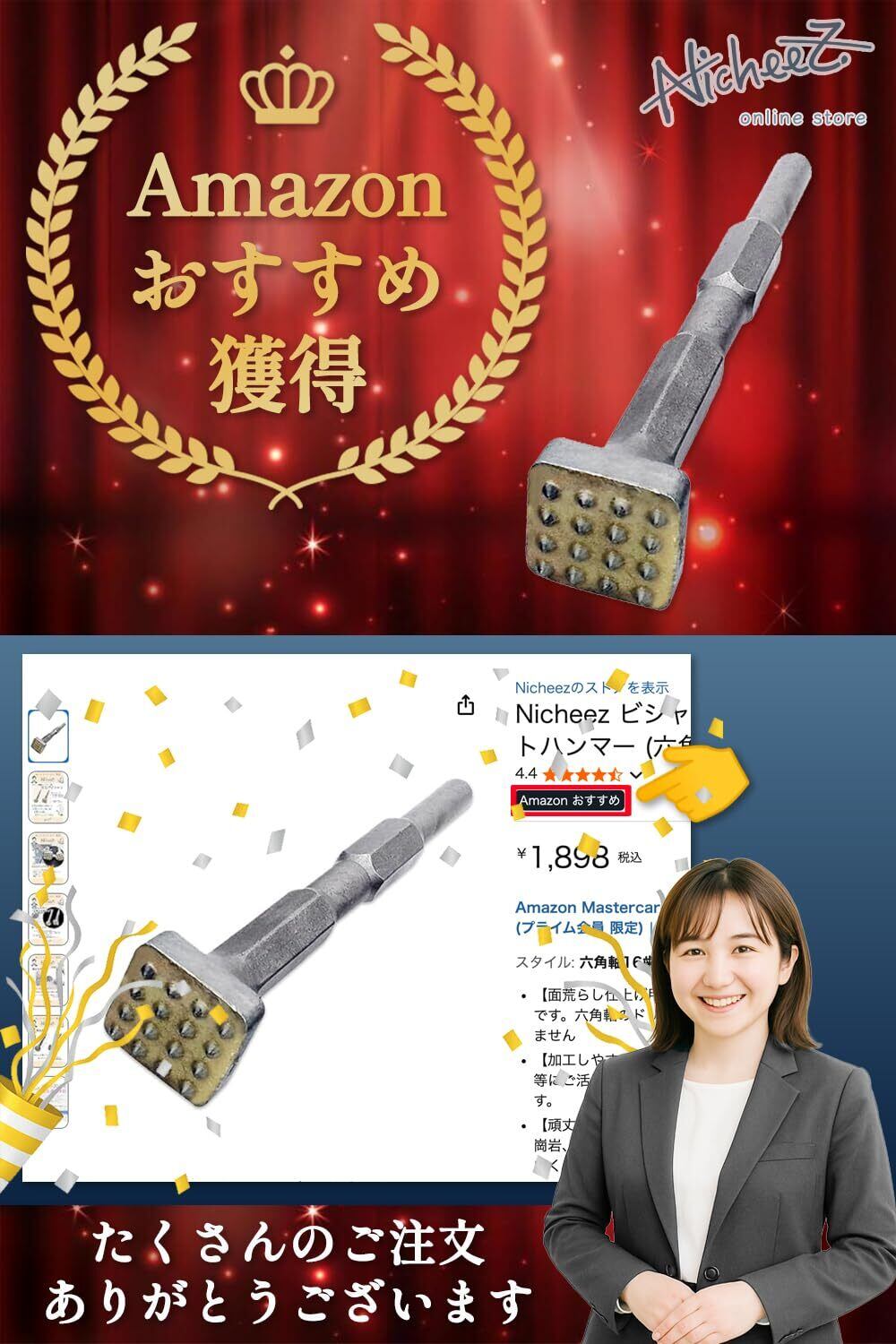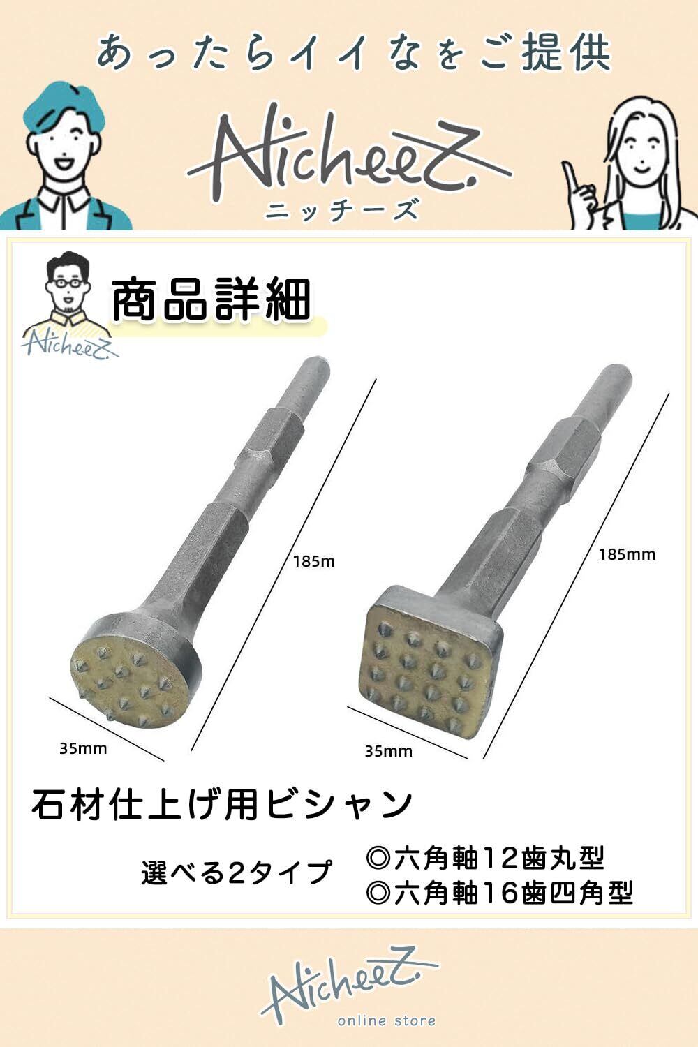 【限定セール】Nicheez ビシャン 電動ハンマー用 六角 石材 工具 コンクリートハンマー (六角軸16歯四角型)