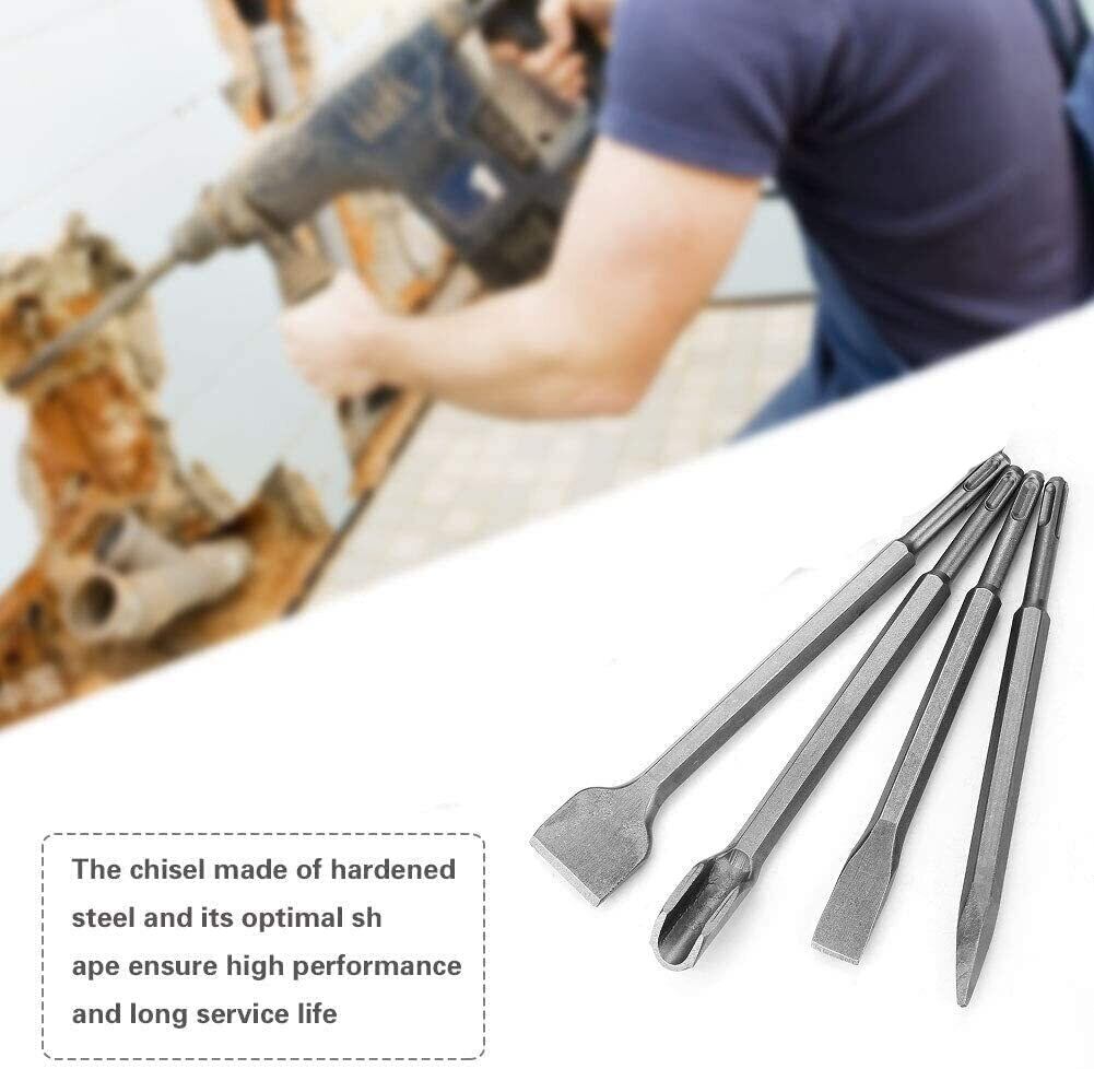 電動 ハンマー 用 SDS Plusビット 充電式ハンマードリル チゼル チゼルセット プラス シャンク コンクリート タガネ 工具 バリ取り 切断 ハツリ 作業 SDS ビット コンクリート 石およびそ 45crタングステン鋼 チゼル 4本入