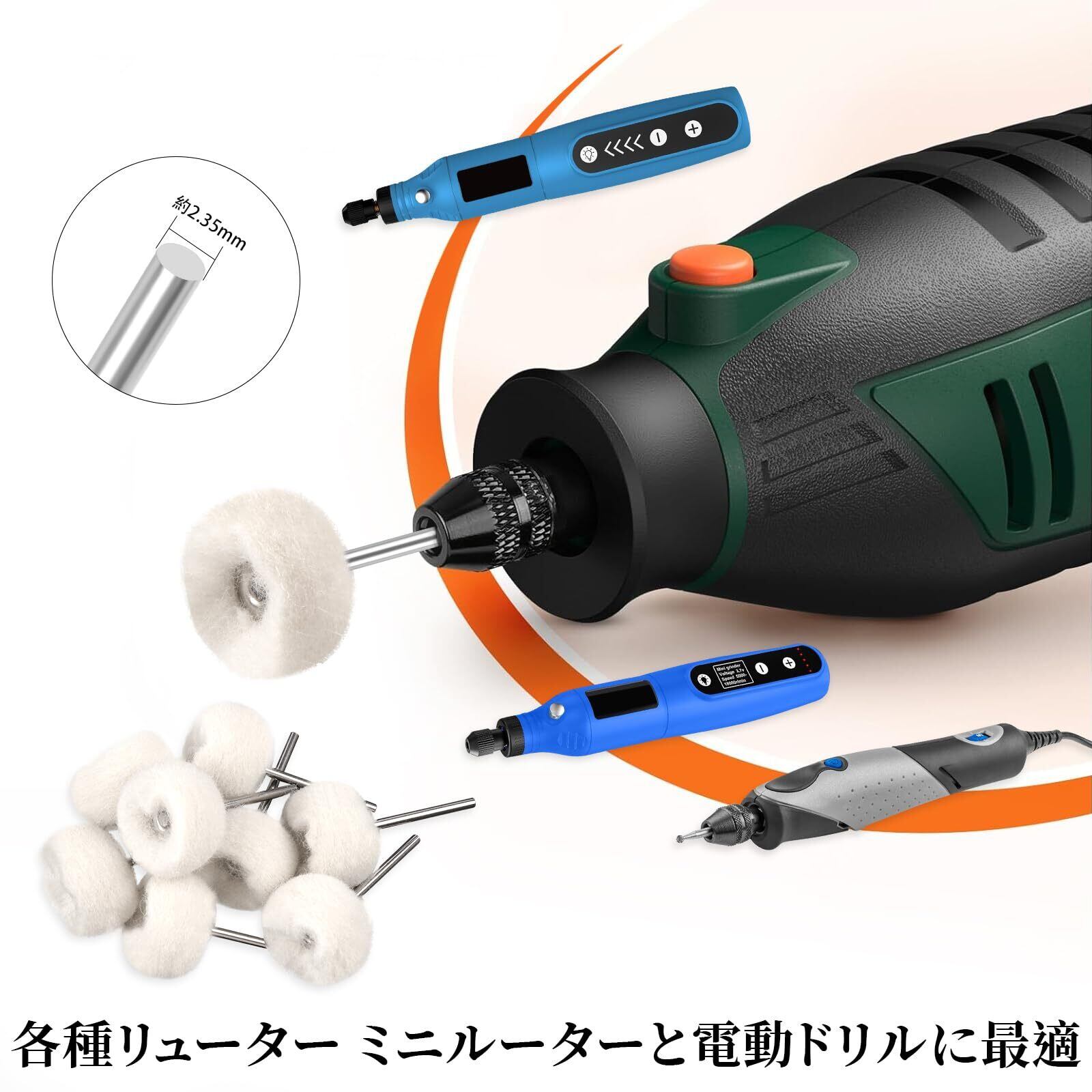 【新着商品】リューター フェルト バフ 2.35mm軸 ルーター バフ 30個セット ウールフェルト磨き,ホイール型 鏡面研磨や金属磨き仕上げ