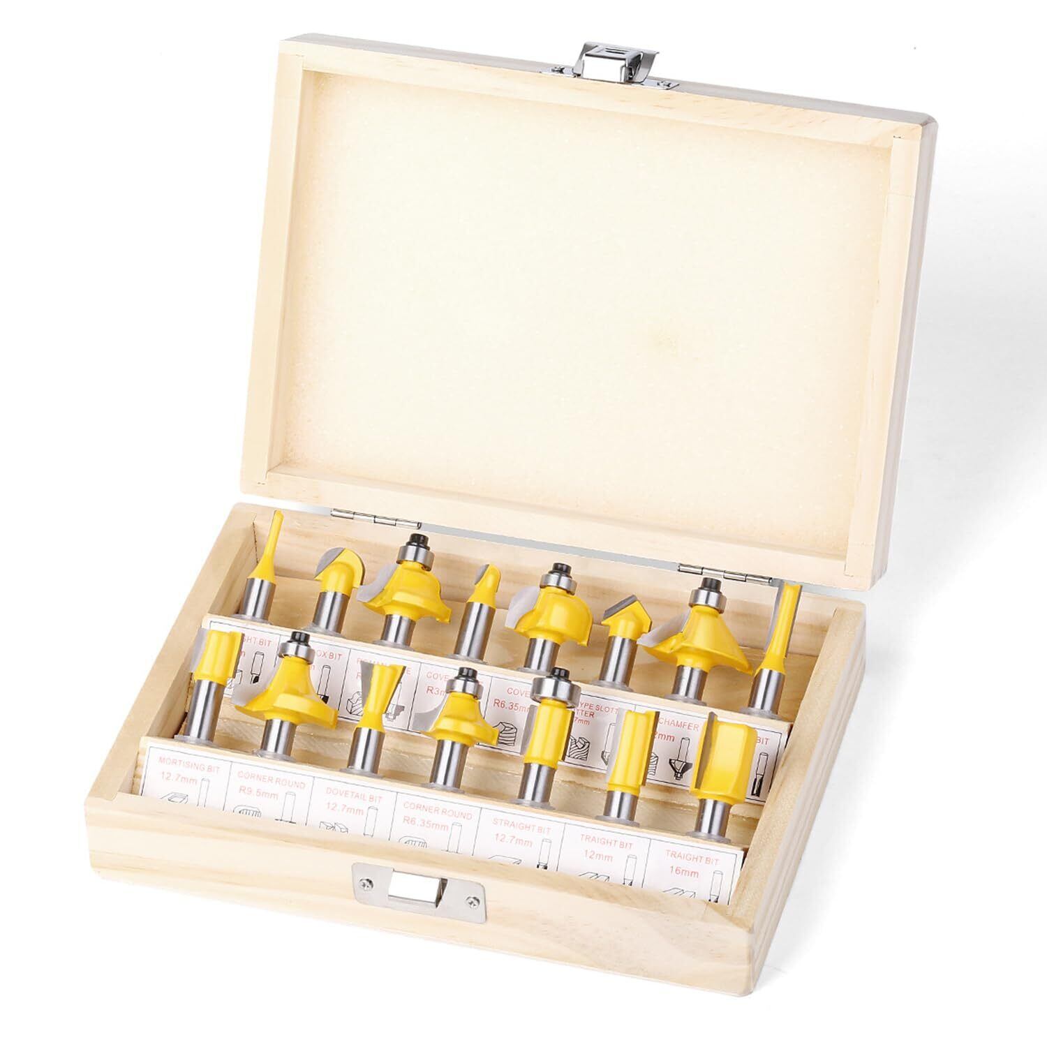 【2025最新】トリマービットセット 超硬ルーターセット 15本組 軸径6.35mm 木製収納ボックス付き