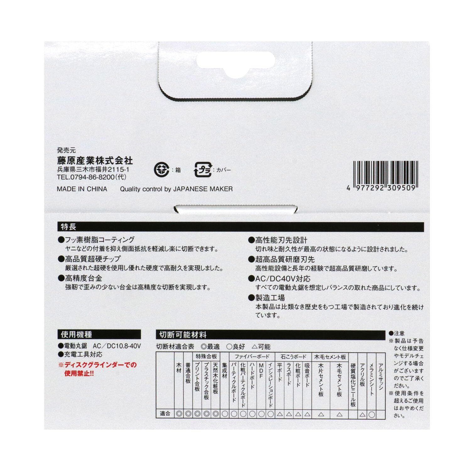 特徴1:フッ素コートで挽きが軽い、腰入台金により直進性に優れたチップソー