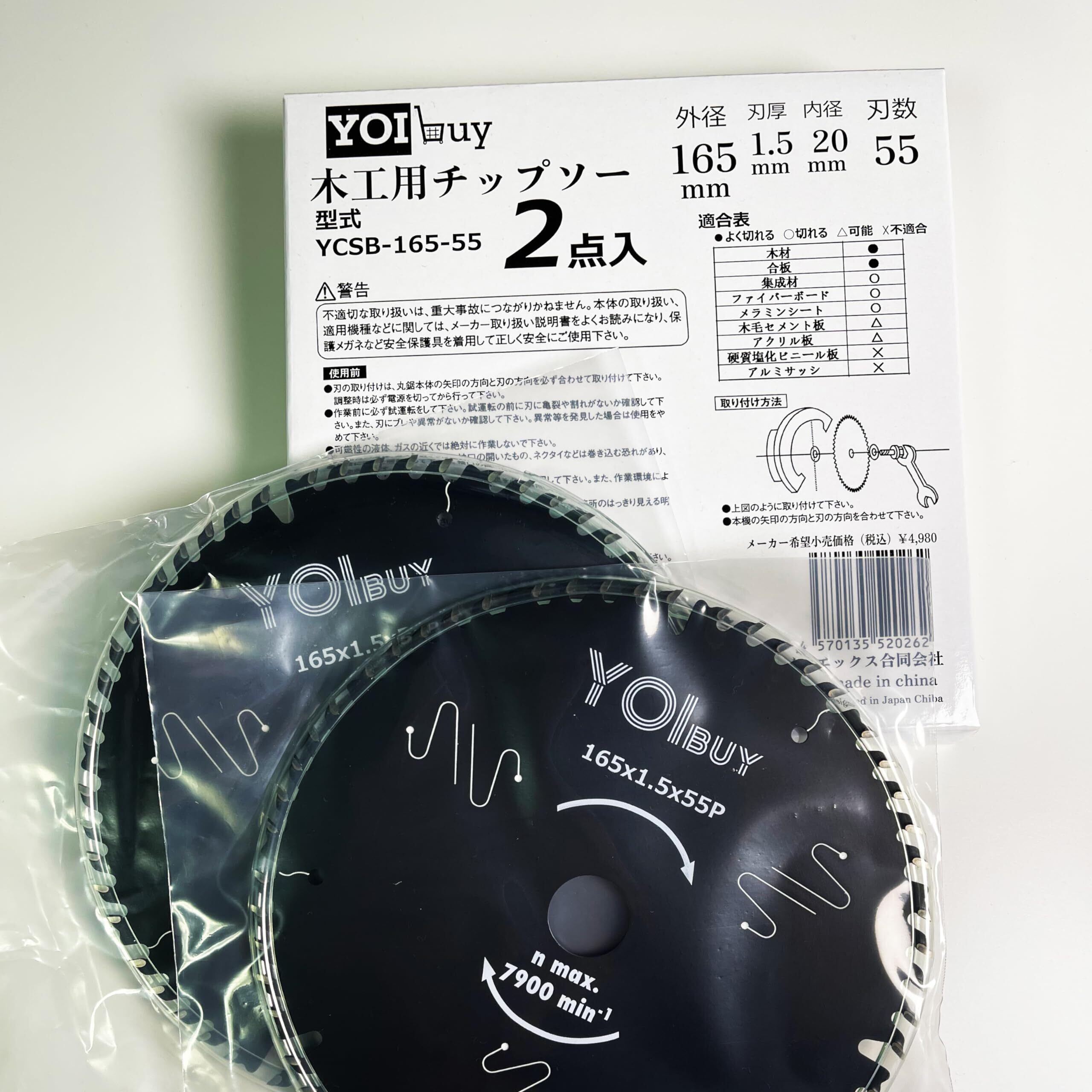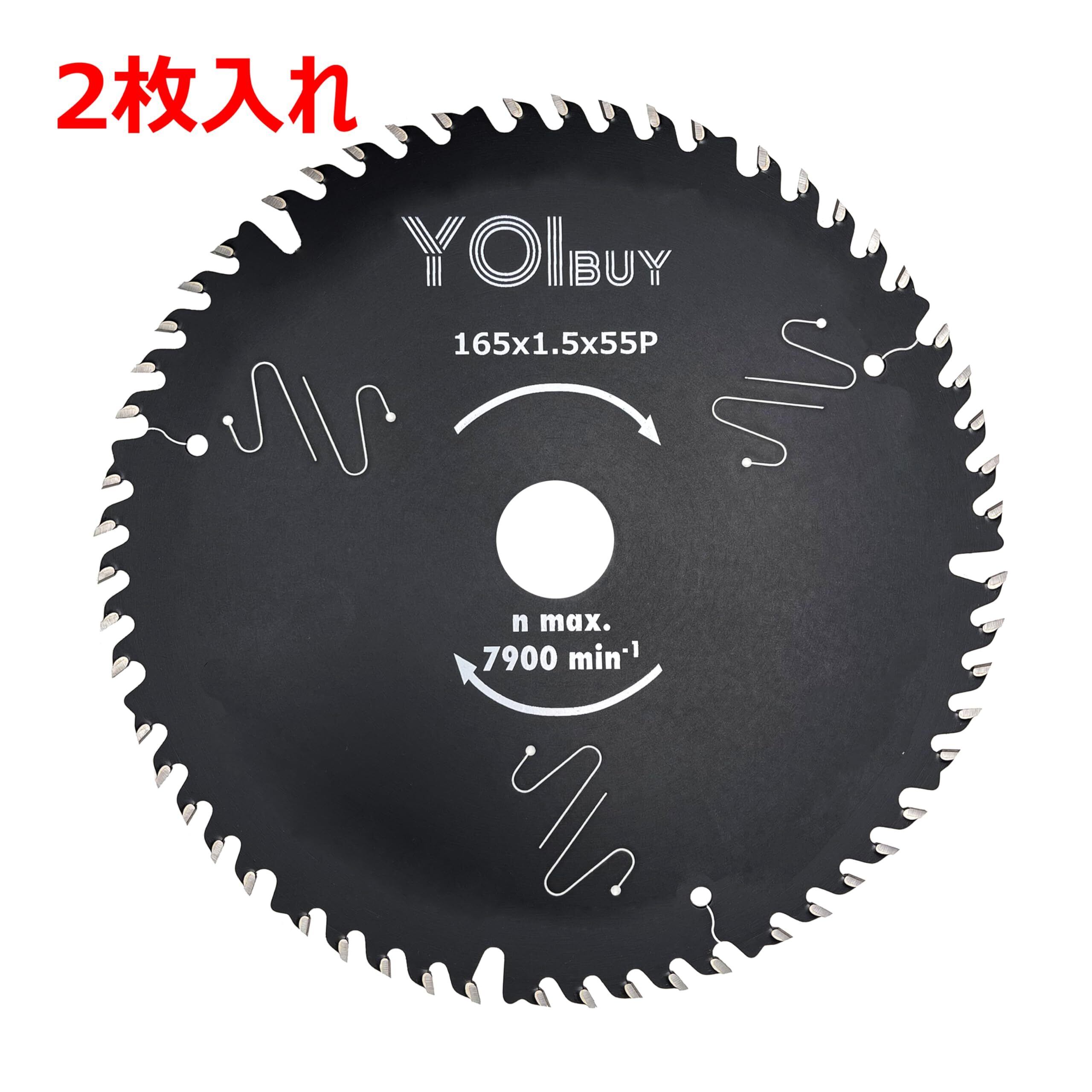【特別価格】丸鋸刃 165mm 2枚入れ チップソー 165x1.5x55P 内径20mm 木工用 静音 造作用 フッ素樹脂コーディング YCSB-165-55