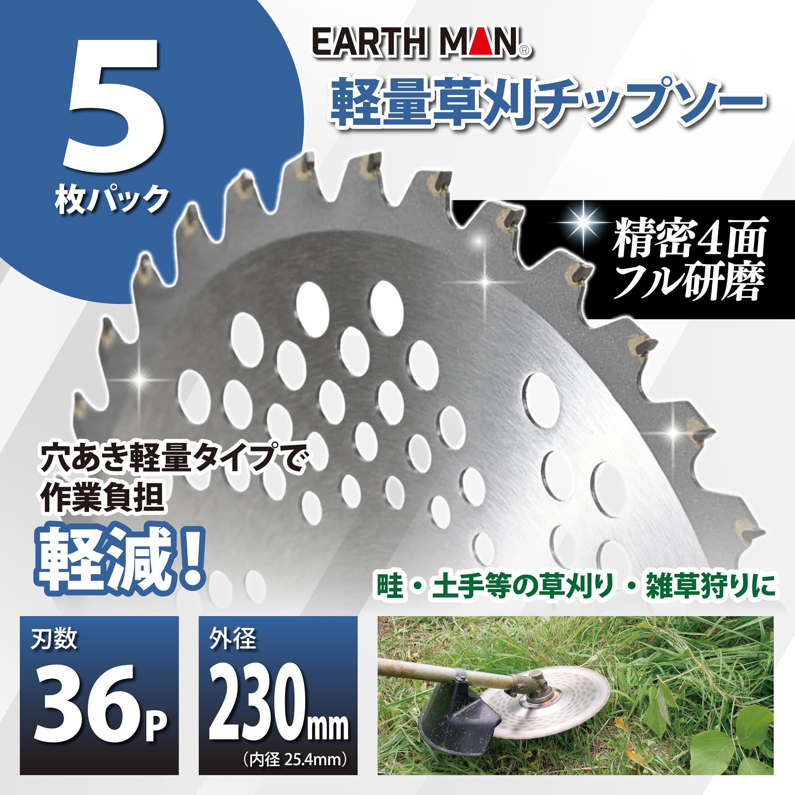 高儀 軽量草刈チップソー 5枚パック 230mm×36P EARTH MAN 替刃 穴あき 雑草刈り 精密4面フル研磨 たかぎ