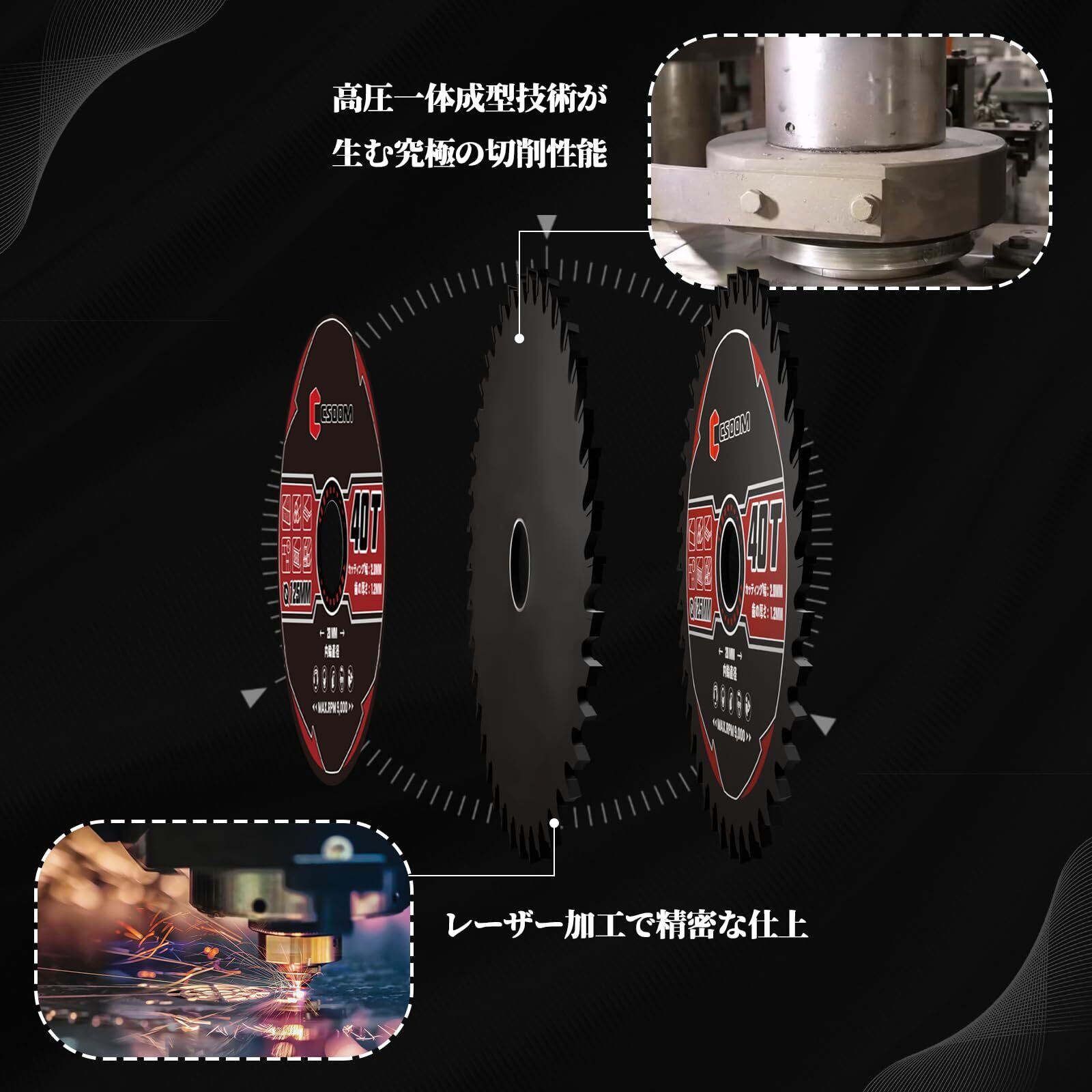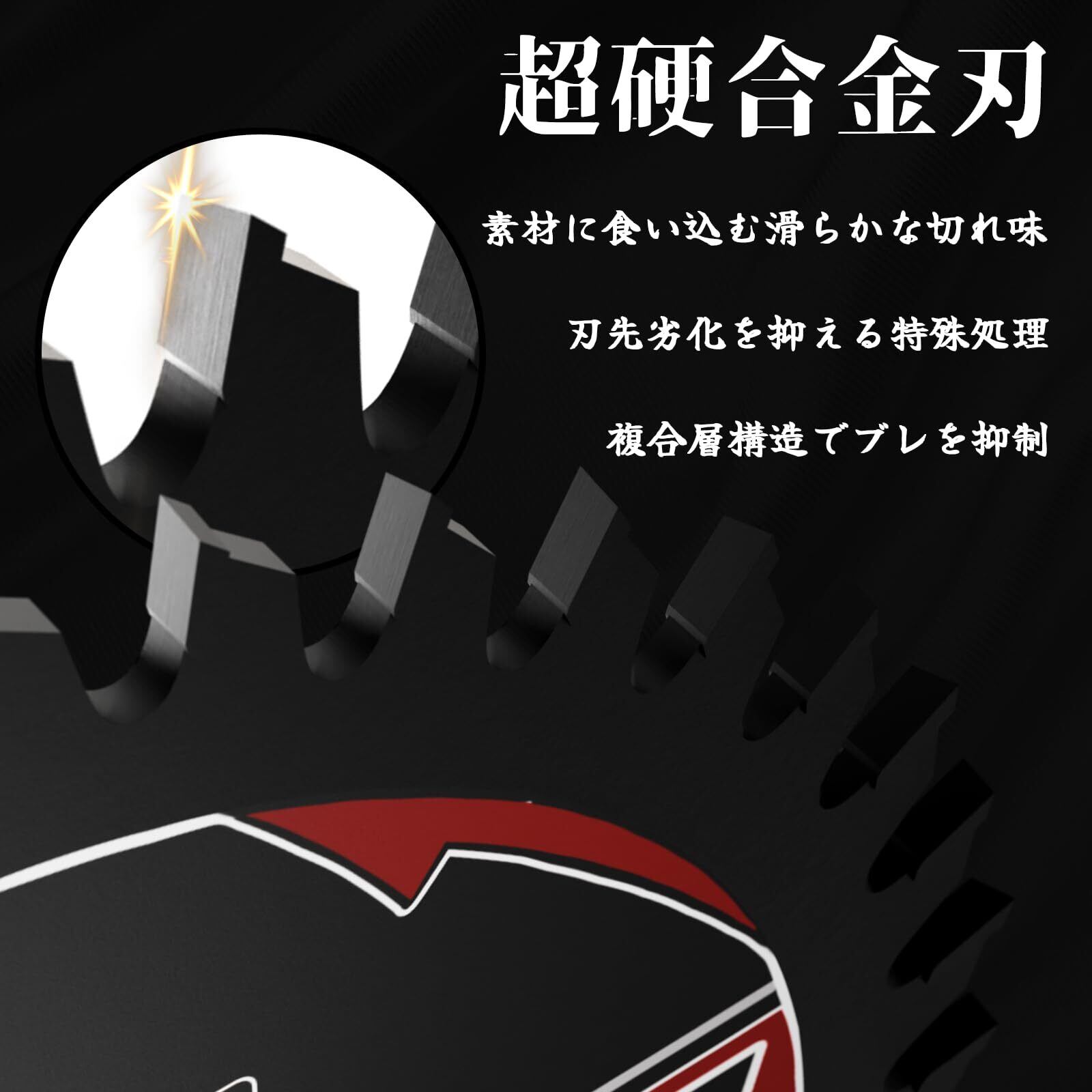 [超硬合金チップで極限の切れ味] 高硬度タングステンカーバイドを採用した刃先は、硬質木材や高密度MDFでも切れ味が持続。通常の高速鋼ソー刃比べて3倍以上の寿命を実現し、コストパフォーマンスに優れます。