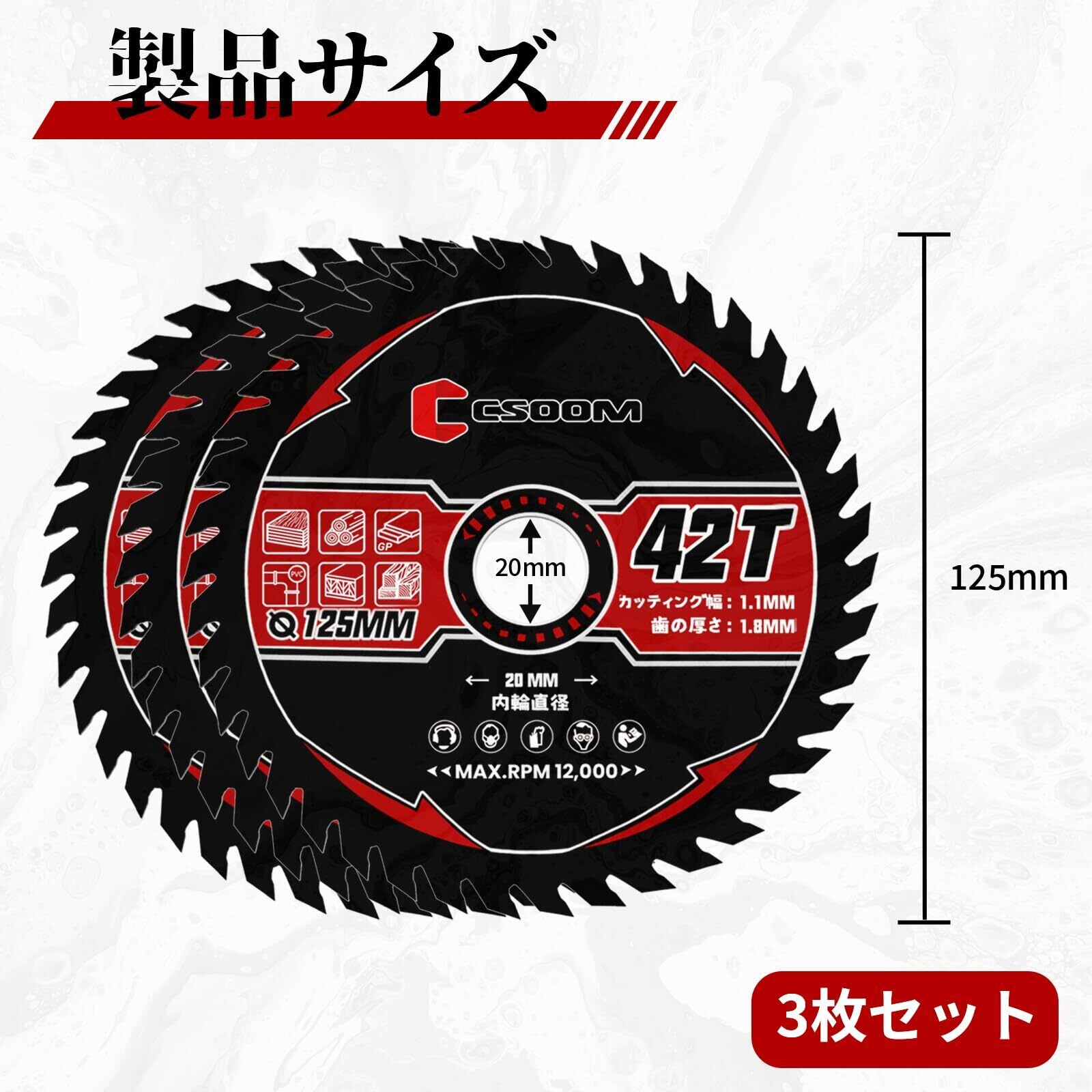 【超硬耐久】YG6丸のこ刃 プロ仕様|静音不等ピッチ設計|硬木・MDF・コンパネ専用|DIY~工場用 (直径125mm 刃数42T×3)