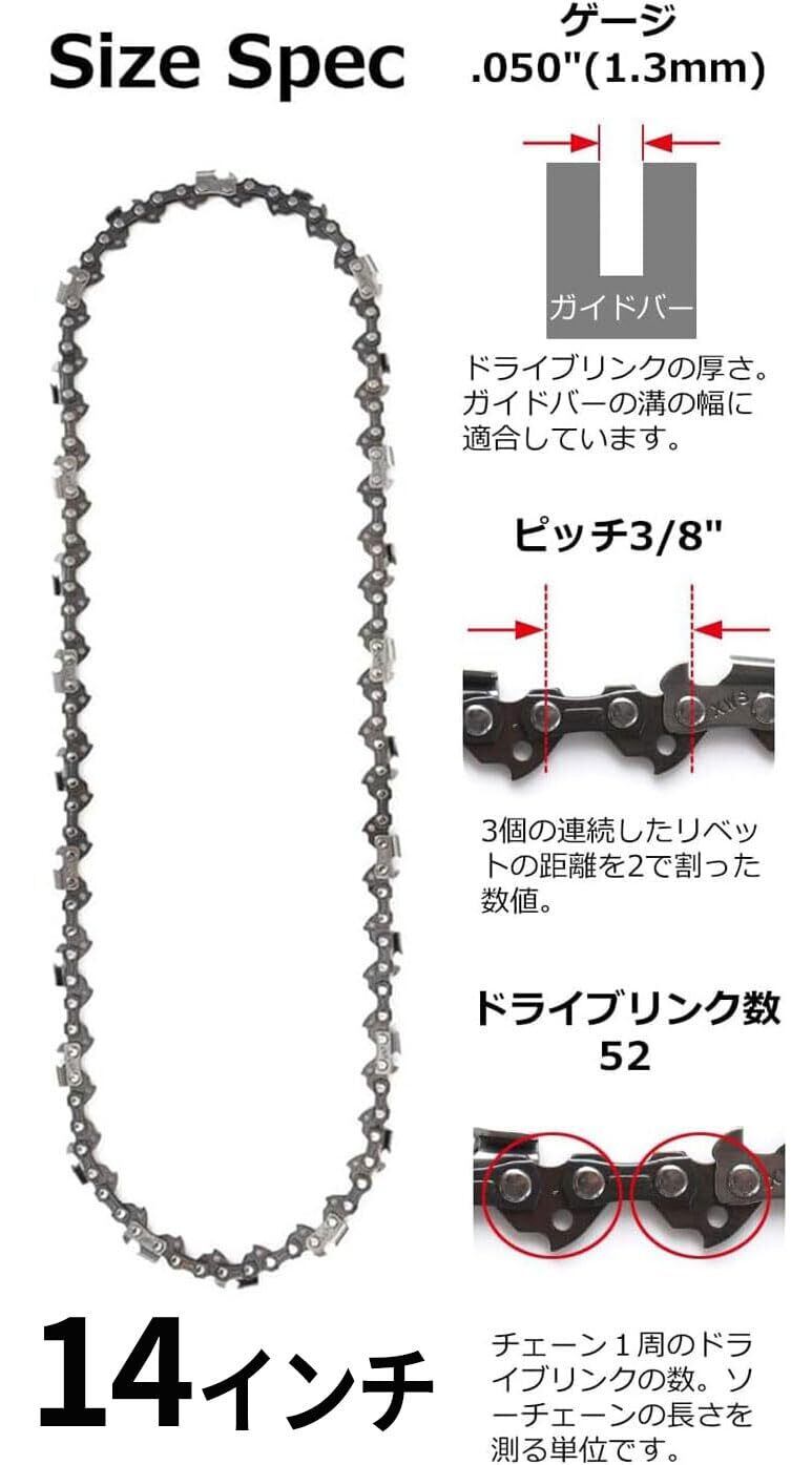 仕様:ピッチ3/8"、ゲージ:.050"(1.3mm)、ドライブリンク数:52