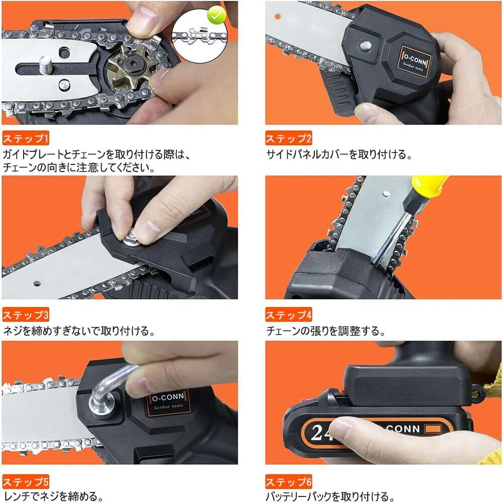 チェーンソー 替刃 4個セットミニチェーンソー 6インチ チェンソー替え刃 チェーン 充電式チェーンソー 交換刃 電動のこぎりアクセサリー 木工切断 枝切り伐採 家庭用 園芸用 (4)