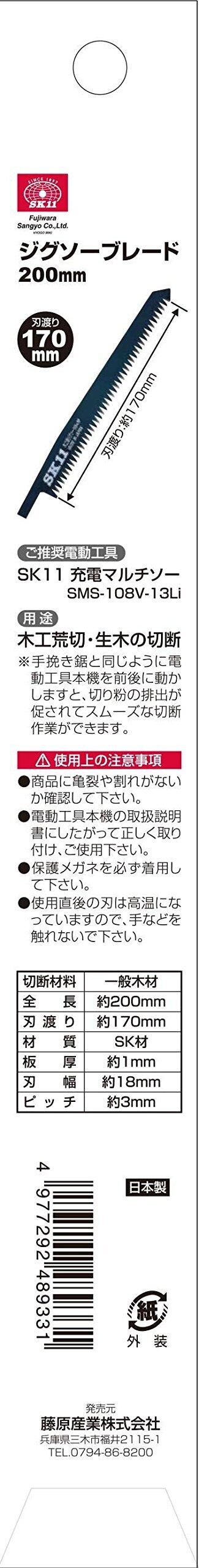 【限定セール】SK11(エスケー11) ジグソーブレード 200mm 充電マルチソーSMS-108V-13Li用 SJB-200W