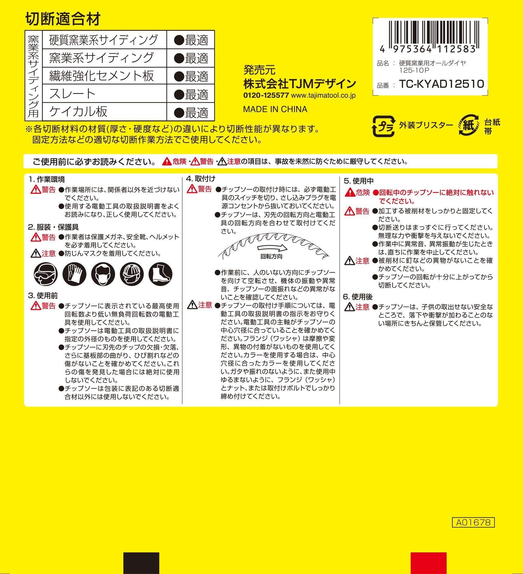 【特別価格】タジマ(Tajima) チップソー 硬質窯業用オールダイヤ 125-10P TC-KYAD12510