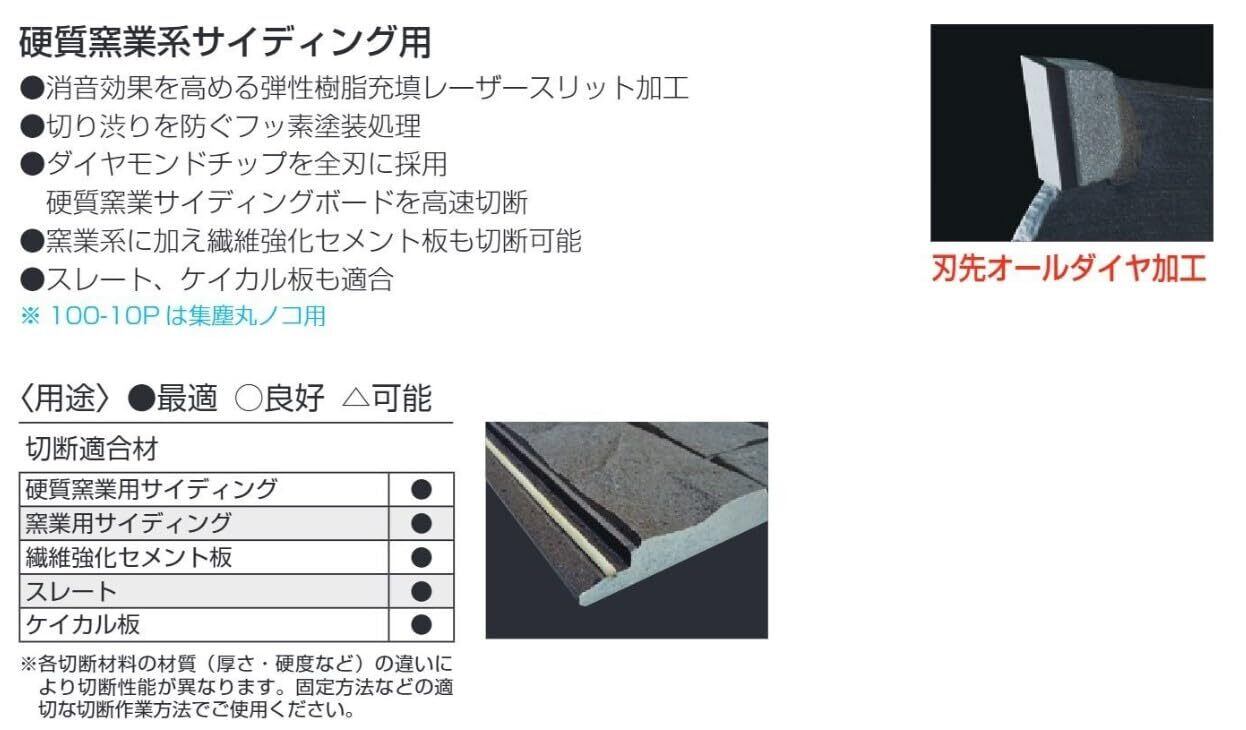 ●サイディング用●ダイヤモンドチップを全刃に採用、硬質窯業系サイディングボードを高速切断●窯業系に加え繊維強化セメント板も切断可能●スレート、ケイカル板も適合●コバ欠けしにくい切断面の美しい仕上がり消音効果で切断時の不快音抑制●硬質窯業用チップソー