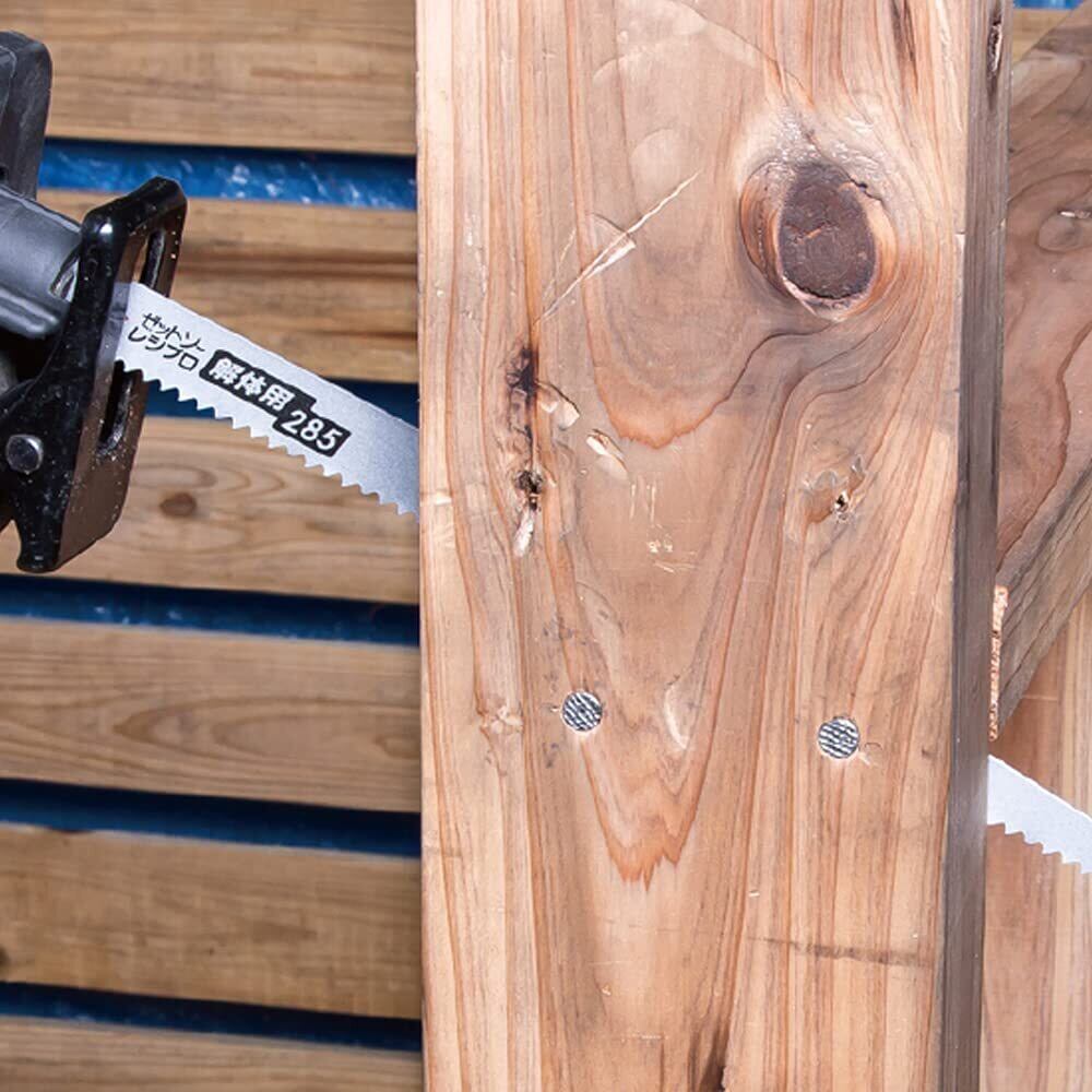 木材に打ち込んである釘や窓枠のアルミサッシも楽々切断