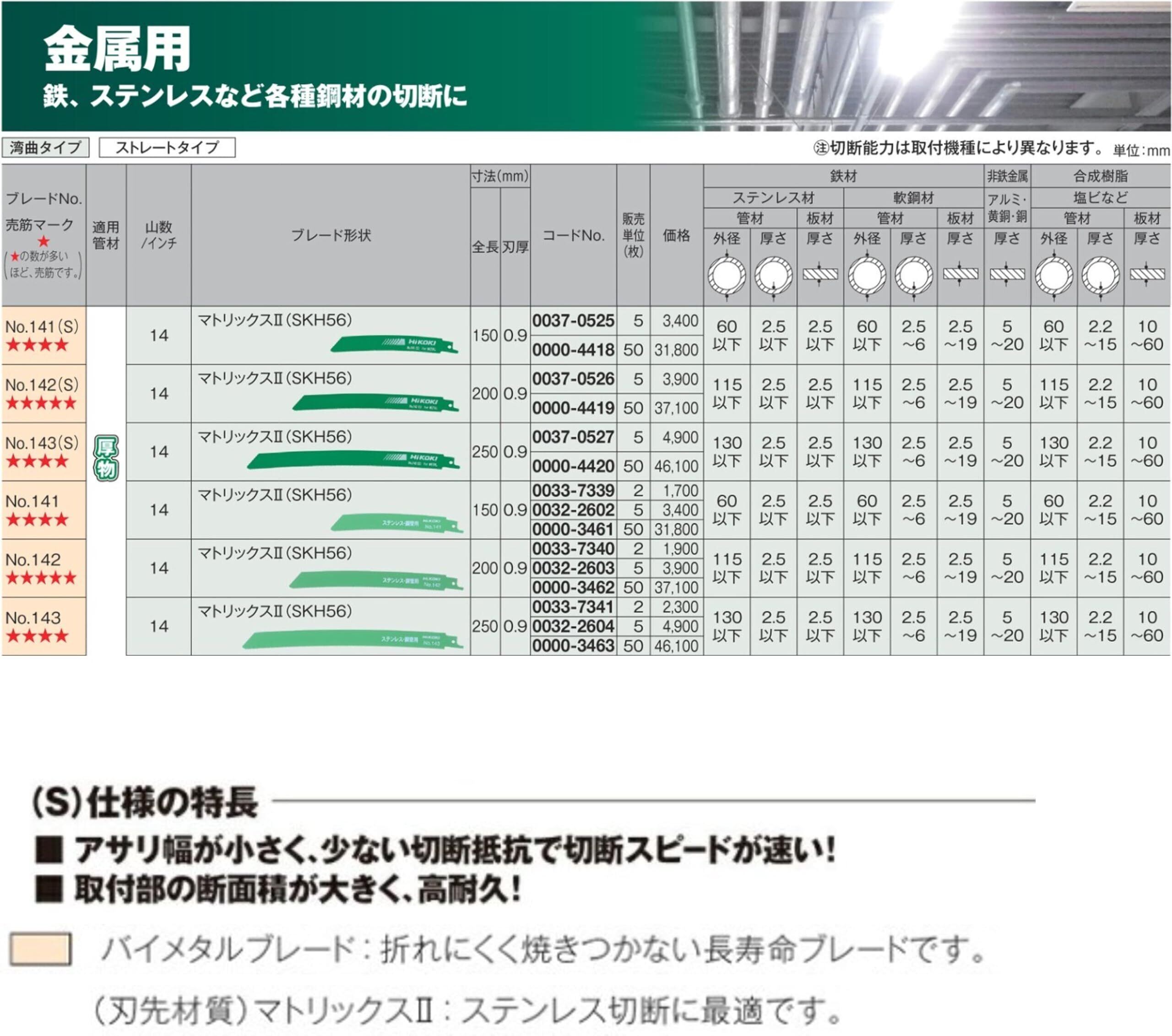 【数量限定】HiKOKI(ハイコーキ) セーバソーブレード レシプロソーブレード No.141(S) 0037-0525