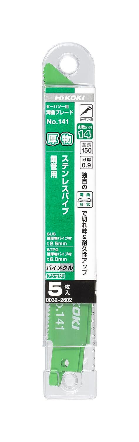 【特別価格】HiKOKI(ハイコーキ) 湾曲セーバーソーブレード レシプロソーブレード No.141 全長150mm 14山/インチ 5枚入 2mm以上ステンレス管材 0032-2602